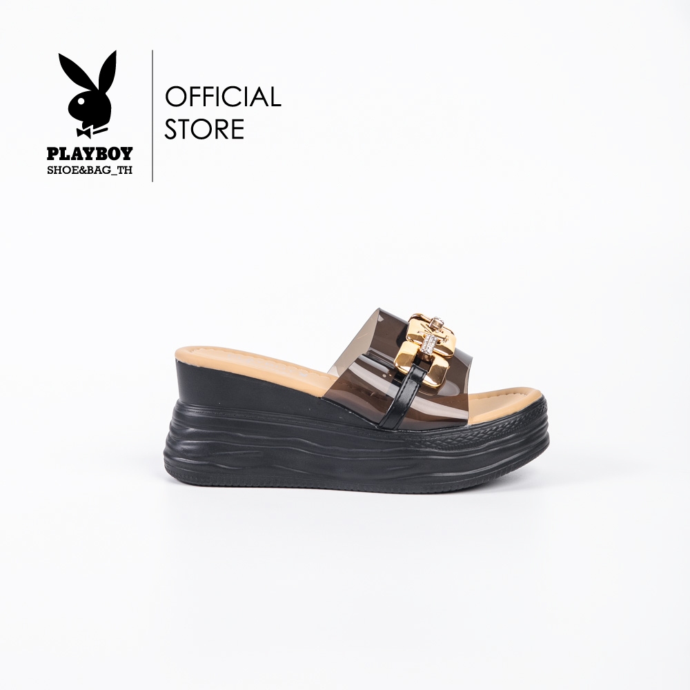Playboy Giày gót dày bằng sáng chế chính hãng Giày ST-HS231C076 thiết kế nâng gót dày với chân vuông 2 màu đen và trắng