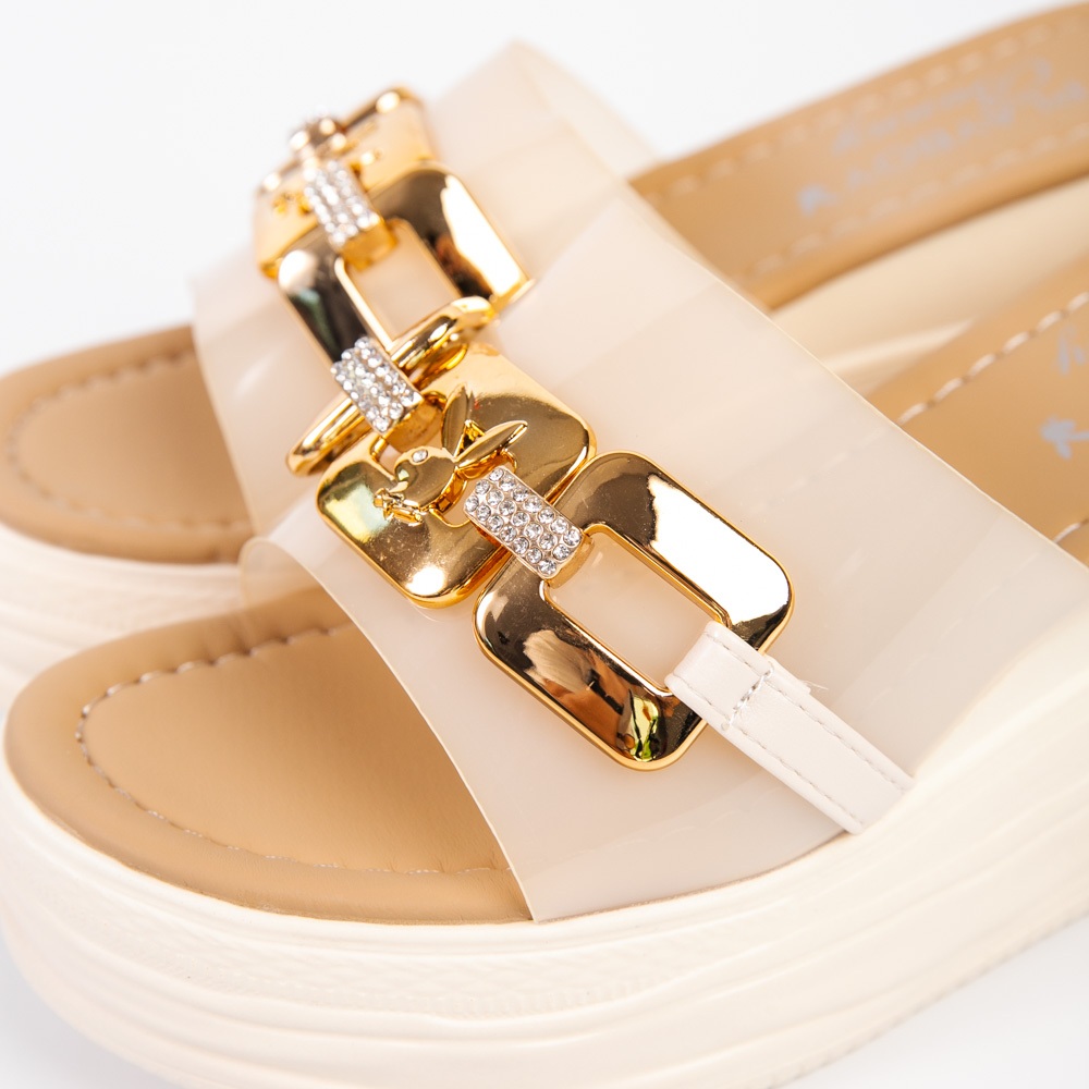 3. ดีไซน์ส้นตันคาดพลาสติกขุ่นแต่งโซ่โลโก้
