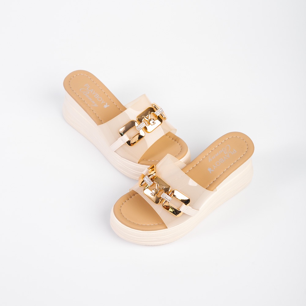 Playboy Xăng đan đế xuồng ST-HS234C104 Giày cao gót lấp lánh Thiết kế 2 màu trắng và đen