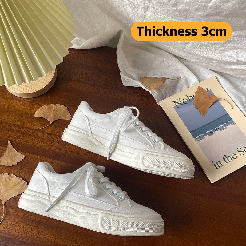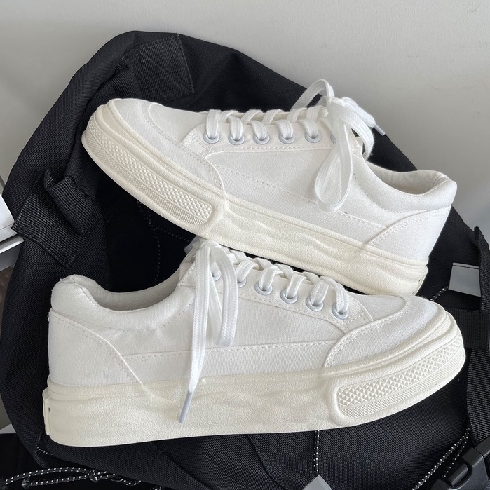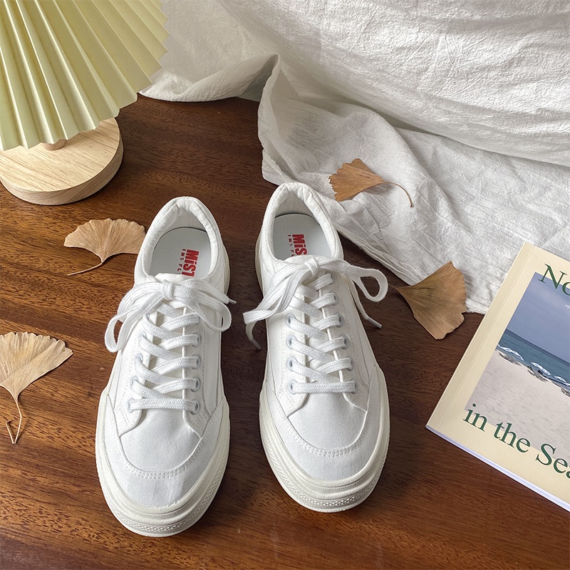 (Hàng Mới Về) giày vải bố nữ giày phù hợp thường ngày phong cách Ins màu trắng thời trang Hồng Kông
