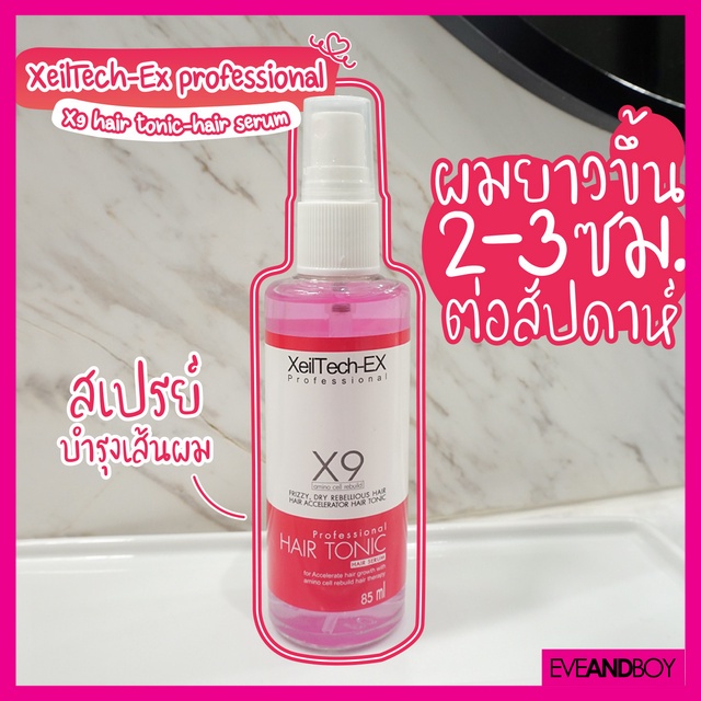 เร่งผมยาว 9 เท่า‼️ XEILTECH-EX X9 Amino Cell Rebuild Hai Tonic Hair Serum เซรั่มเร่งผมยาว สังเกตุได้ภายใน 1 สัปดาห์ ด้วยพลังจาก amino cell rebuild ช่วงเร่งการเจริญเติบโตและลดการหลุดร่วงของเส้นผม พร้อมโปรตีนจากข้าวสาลี และสารสกัดจากธรรมชาติอื่นๆ ทำให้เส้นผมยาวเร็วขึ้นได้ถึง 9 เท่า* โดยไม่ทำให้ผมแห้งเสีย พร้อมบำรุงให้ผมนุ่มสลวย ด้วยสูตรอนุภาคที่เล็กจึงทำให้ตัวยาแทรกซึมเข้าไปในเส้นผมได้ทันทีโดยไม่ทิ้งสารตกค้าง ช่วยปรับสภาพผมให้สมดุลจากโคนจรดปลาย (*ขึ้นอยู่กับสภาพผมแต่ละบุคคล)