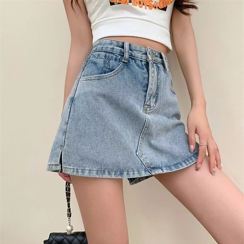 Chân váy chữ A 5 Màu Chân váy denim với quần chống tĩnh điện khâu hai bên # j316