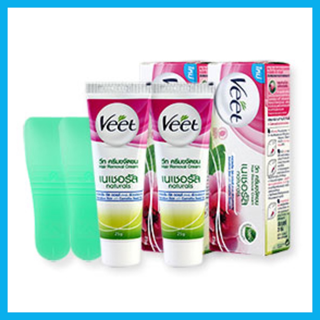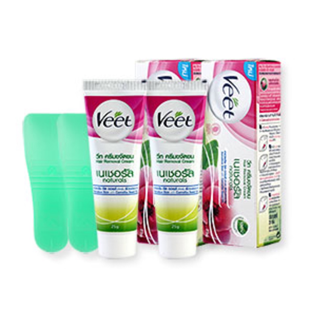 Cr: VeetThailand[แพ็คคู่] Veet Hair Removal Cream Camellia Seed Oil Sensitive Skin [25g x 2pcs]ครีมขจัดขนอุดมด้วยสารสกัดน้ำมันเมล็ดคามิลเลีย สามารถขจัดขนได้อย่างอ่อนโยน ให้ผิวเรียบเนียนน่าสัมผัส พร้อมเผยผิวให้ดูกระจ่างใส จึงเหมาะสำหรับผิวบอบบาง
