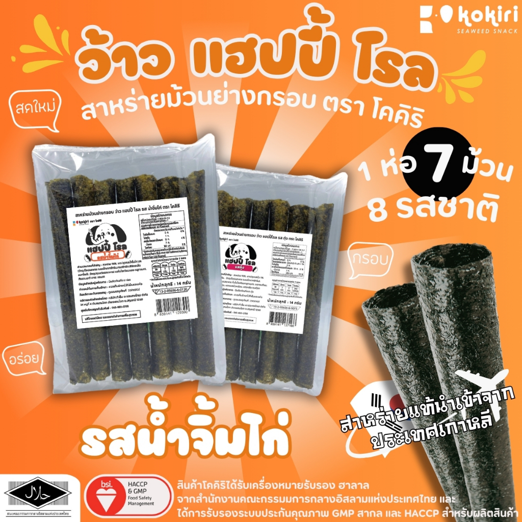 สาหร่ายม้วนอบกรอบ นำเข้าจากเกาหลี มีคุณภาพ ผลิตได้มาตรฐาน มีอย.รับรอง อร่อย สดใหม่