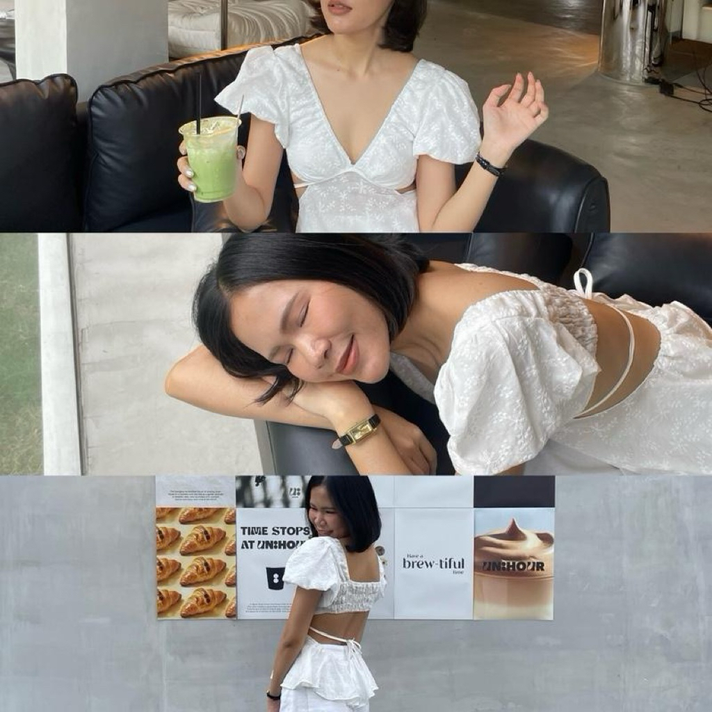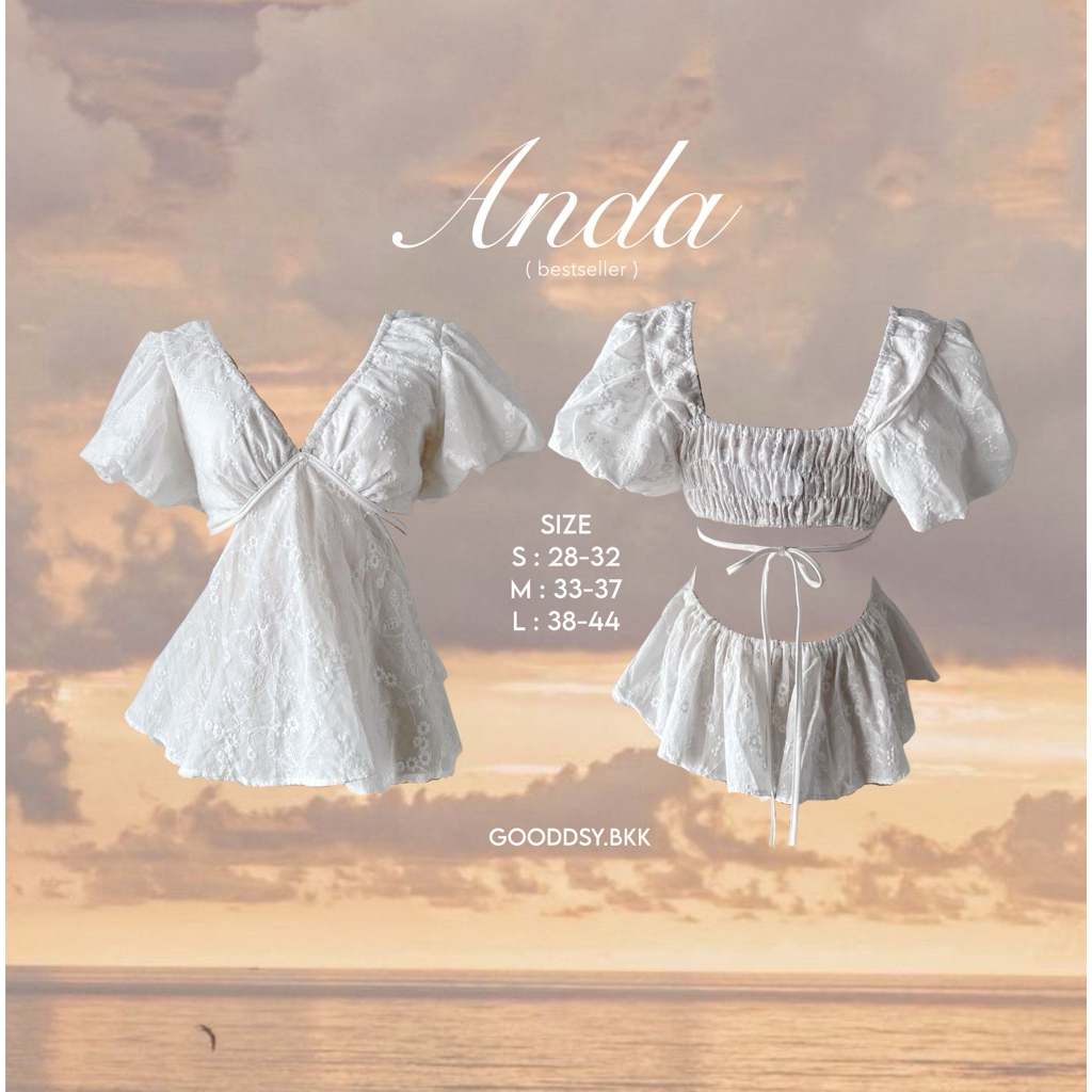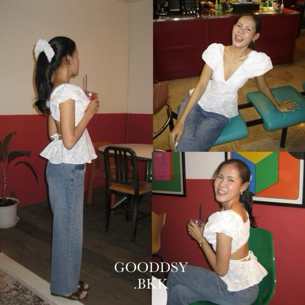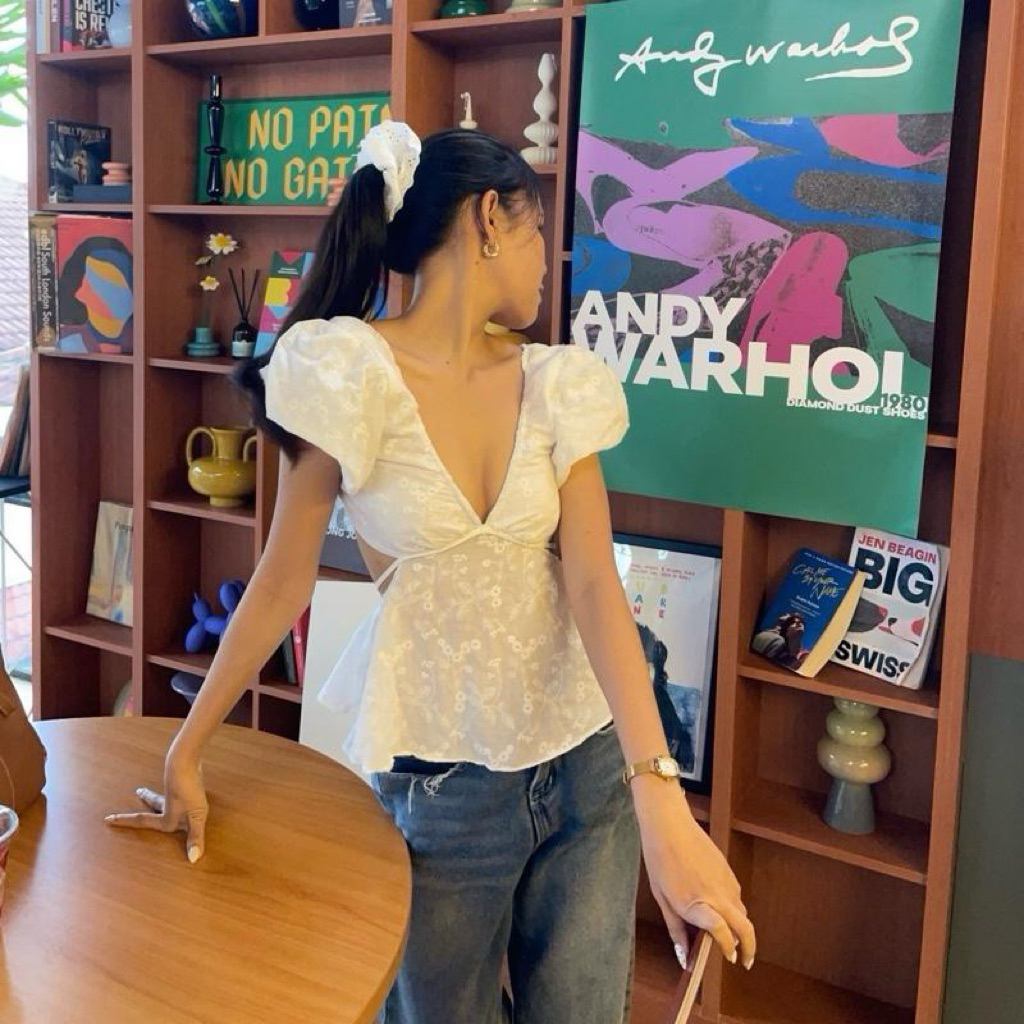 🎀🫧Anda เสื้อคอวีแขนตุ๊กตาสม็อกหลัง ดีเทลแต่งสายผูกหลังสุดเก๋
