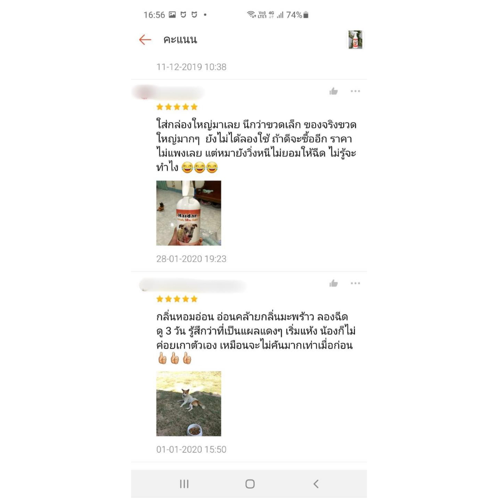 อาการคัน หรือ ผื่นเเดง ไรขี้เรื้อน ใช้พ่นให้ทั่วทั้งตัว วันละครั้ง อาการคันจะค่อยๆดีขึ้น ผิวหนังจะค่อยๆดีขึ้นและขนกลับมาขึ้นเหมือนเดิมพ่น วันล่ะ 1 ครั้ง ให้ทั่วตัว จนกว่า อาการจะดีขึ้น ให้สังเกตุว่าผิวหนังส่วนที่เสียจะค่อยๆดีขึ้น และจะเห็นขนใหม่แทงขึ้นมา หลังจากนั่นให้พ่นต่ออีก 7 วันแล้วสามารถหยุดได้เลย