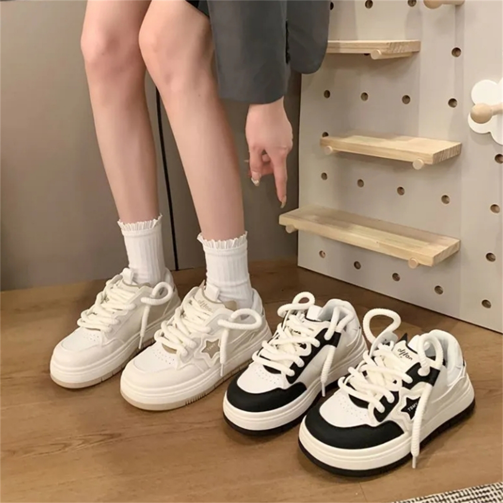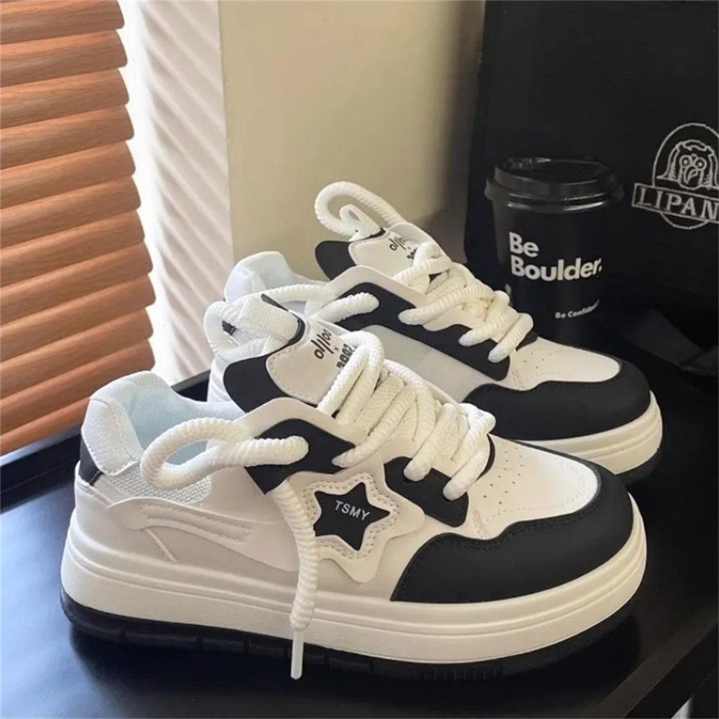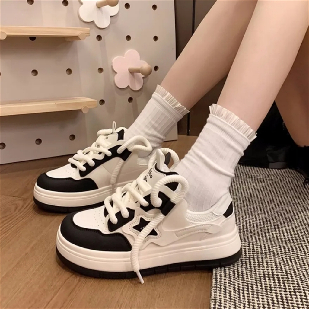 Giày thể thao bánh quy có 2 mẫu 77 màu đen và trắng sẵn sàng giao hàng tại Thái Lan