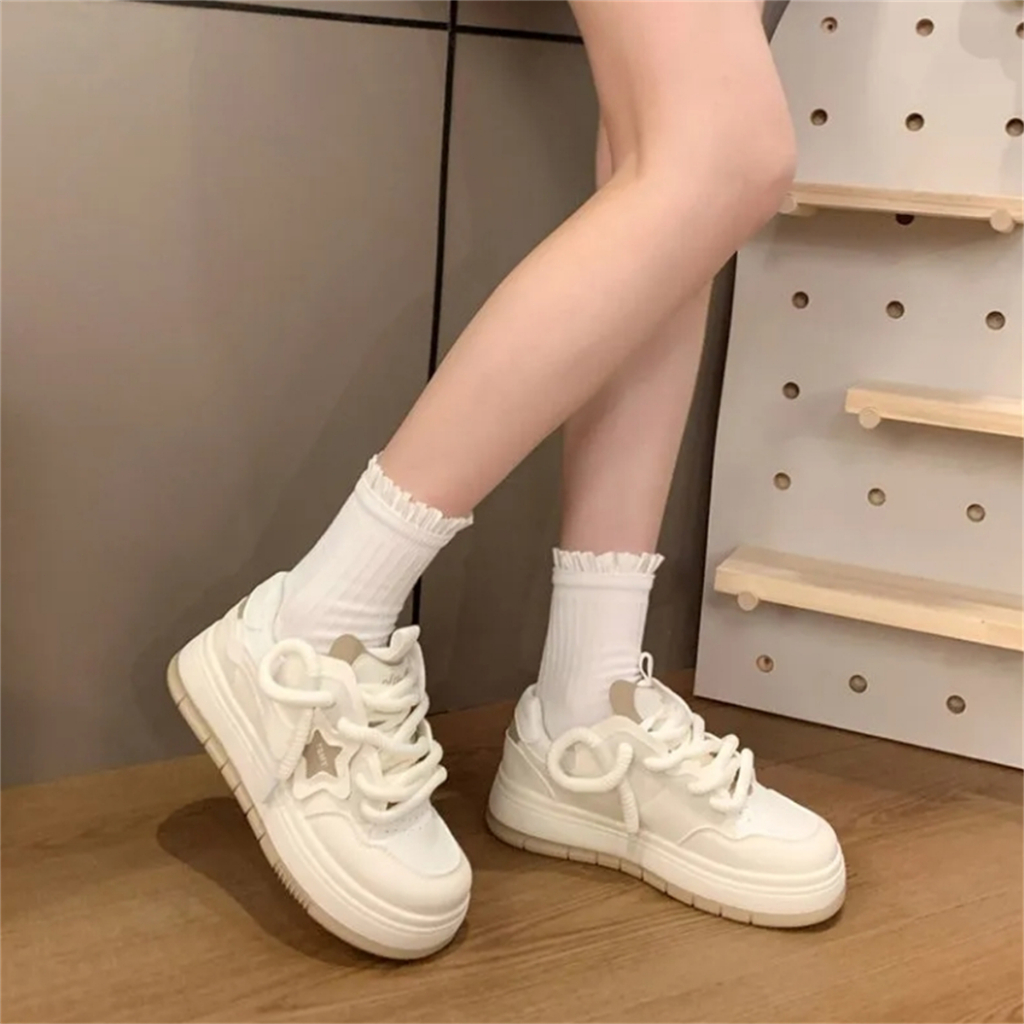 ⚡Sẵn sàng vận chuyển tại Thái Lan⚡Giày thể thao Nữ Giày đế dày thoáng khí nhẹ màu trắng