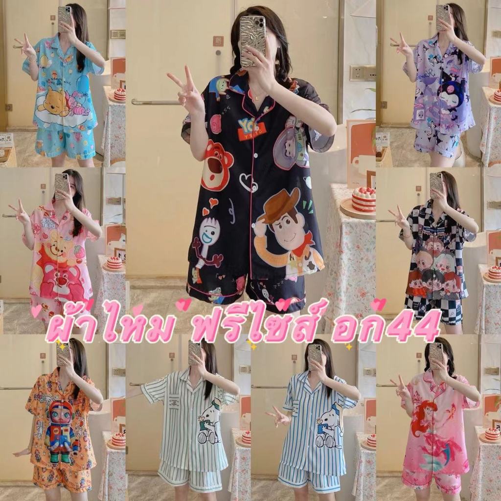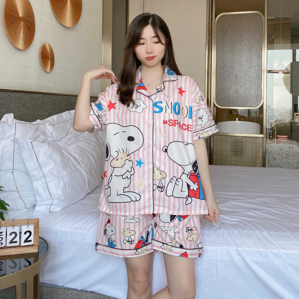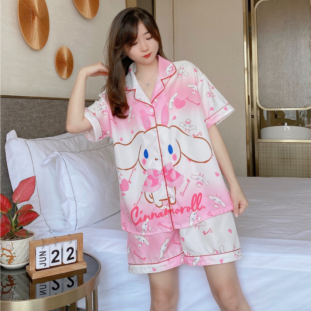 Áo ngủ lụa ý cỡ lớn đồ ngủ lụa mỏng tay dài hoạt hình ngắn tay mặc thường ngày
