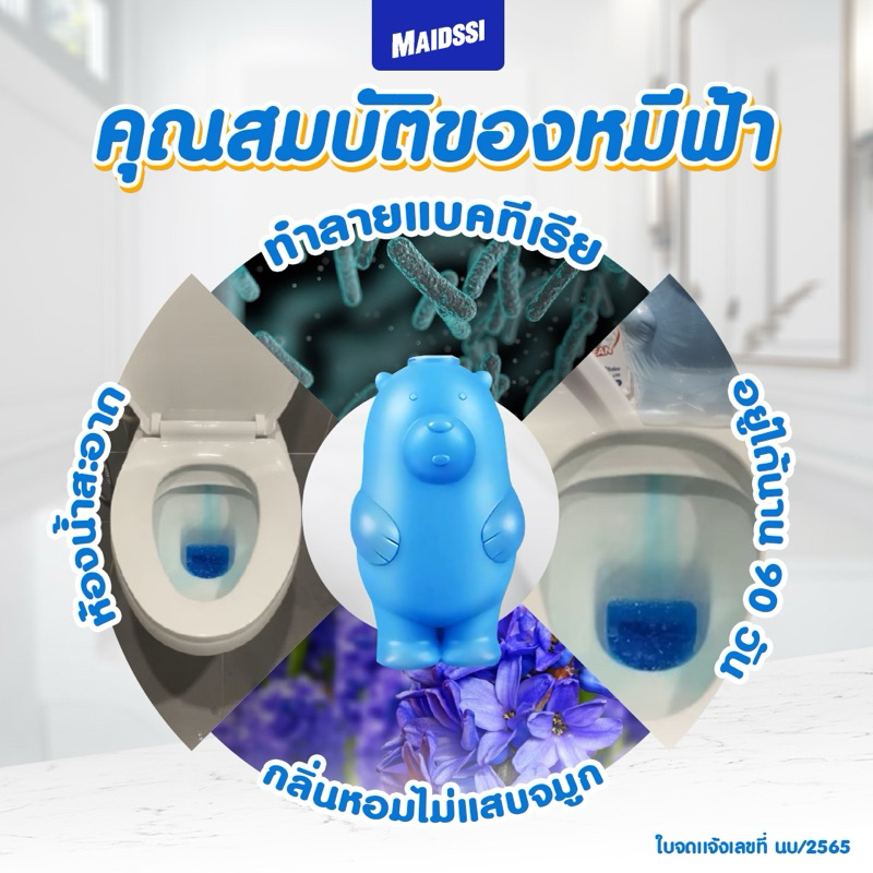 หมีฟ้าดับกลิ่น ฆ่าเชื้อแบคทีเรียมีกลิ่นหอมธรรมชาติ สะอาด กดแล้วจะได้น้ำสีฟ้า