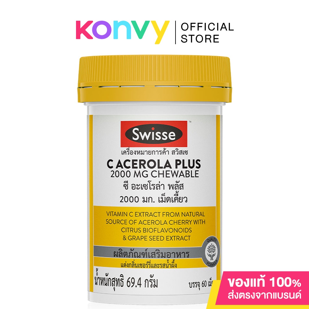 SWISSE C Acerola Plus 2000MG Chewable 60 Tables ผลิตภัณฑ์เสริมอาหารในรูปแบบเม็ดเคี้ยว รสเชอร์รี่ ฮันนี่ มีวิตามินซี ด้วยสกัดจากผลอะเซโรล่าเชอร์รี่สดจากประเทศบราซิล รสชาติอร่อย ทานง่าย
