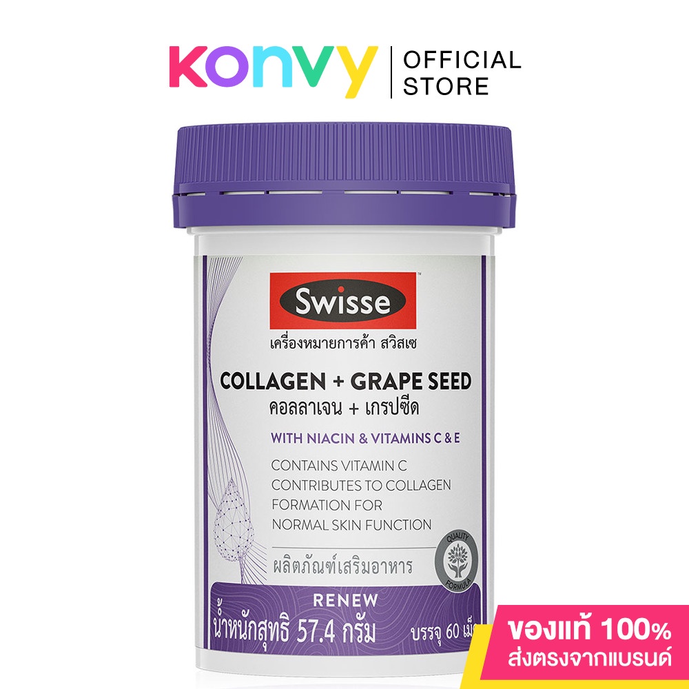 SWISSE Collagen + Grape Seed 60 Tabletsผลิตภัณฑ์เสริมอาหารคอลลาเจน และเกรปซีด ชนิดเม็ด