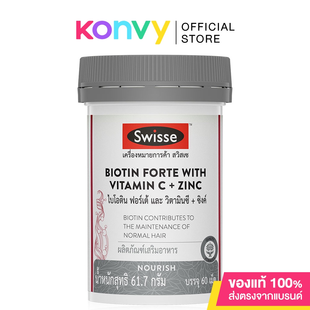 SWISSE Biotin Forte With Vitamin C + Zinc 60 Tablets ผลิตภัณฑ์เสริมอาหารไบโอติน ฟอร์เต้ และวิตามินซี + ซิงค์ รวบรวม 14 สารอาหารสำคัญ