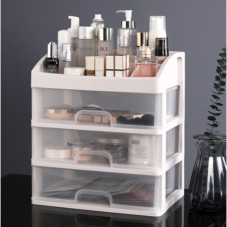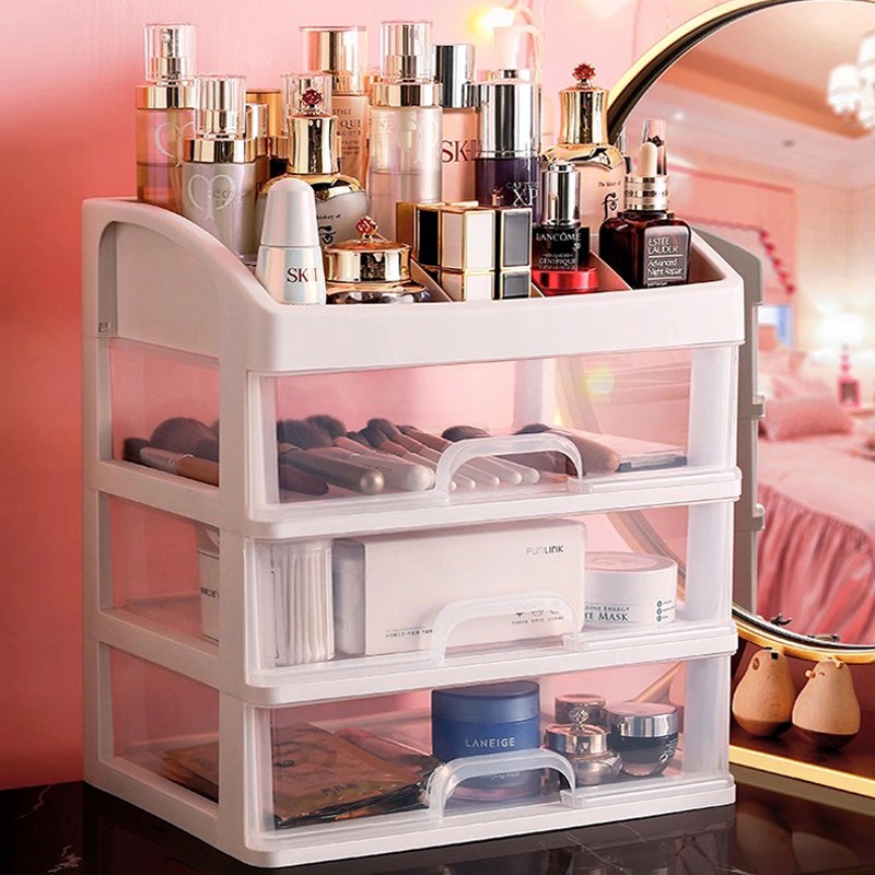 ชั้นวางเครื่องสำอาง อุปกรณ์แต่งหน้า กล่องเก็บเอนกประสงค์แบบมีลิ้นชัก ไร้กลิ่นเเละเป็นมิตรกับสิ่งเเวดล้อม