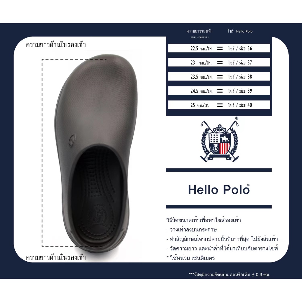 - คุณลูกค้าควรวัดความยาวเท้าแล้วเทียบกับตารางไซส์รองเท้าก่อนสั่งซื้อสินค้า