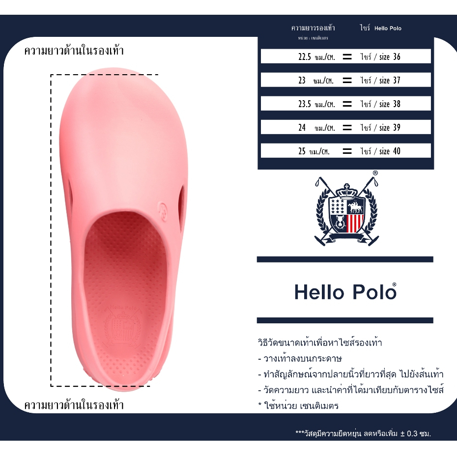- คุณลูกค้าควรวัดความยาวเท้าแล้วเทียบกับตารางไซส์รองเท้าก่อนสั่งซื้อสินค้า