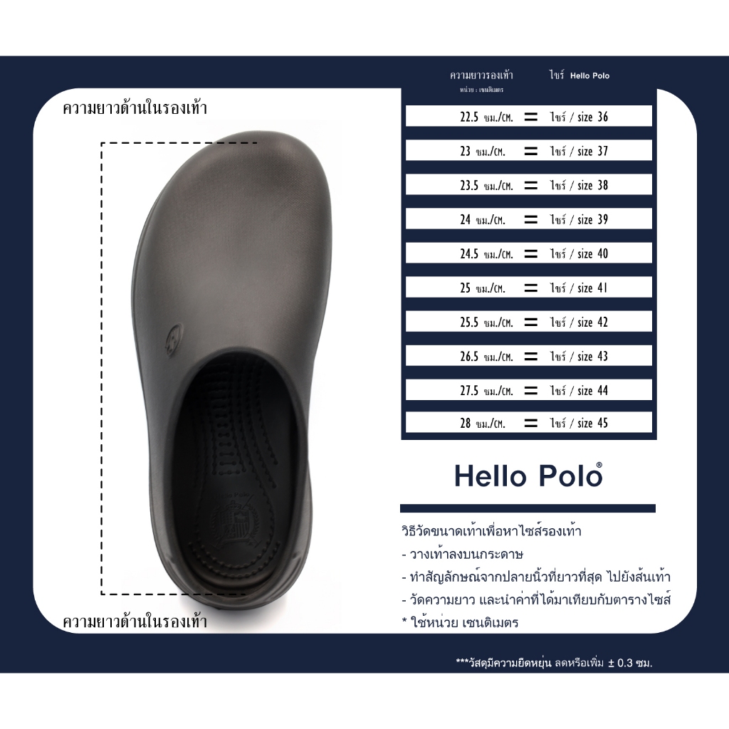 Hello Polo แบรนด์รองเท้าแตะไทยคุณภาพดี ที่ผลิตและจัดจำหน่ายในประเทศไทย ทางร้านมีสินค้าพร้อมจัดส่ง และจะทำให้ดีที่สุดเพื่อส่งสินค้าให้ถึงมือท่านภายใน 1 - 2 วันทำการรองเท้านี้ สร้างสรรค์มาเพื่อคุณที่ต้องการคุณภาพในการใช้ชีวิต: