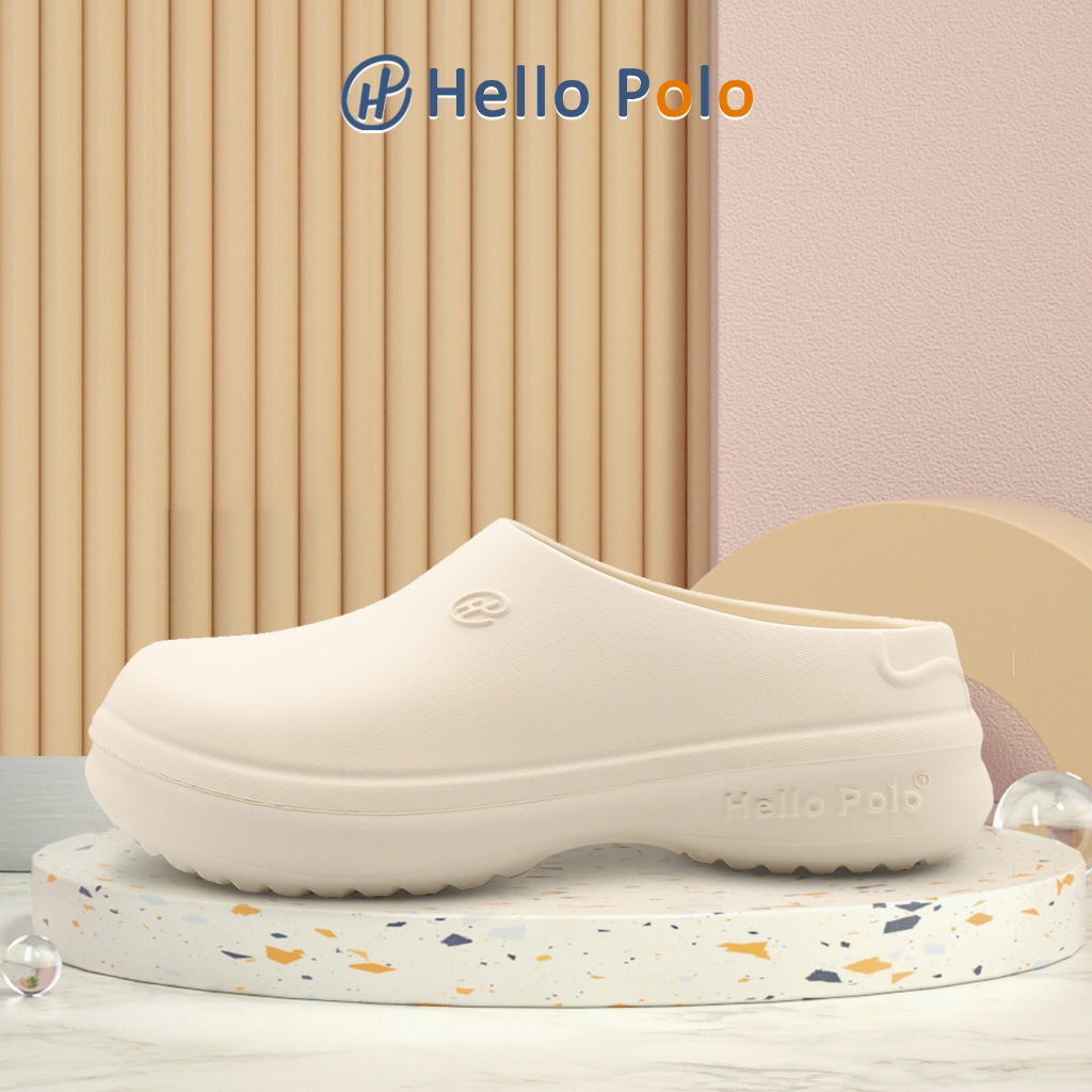 Hello Polo xăng đan mũi to màu trắng shoes-hp8009 nữ chống mài mòn chống nước dày 3.5cm