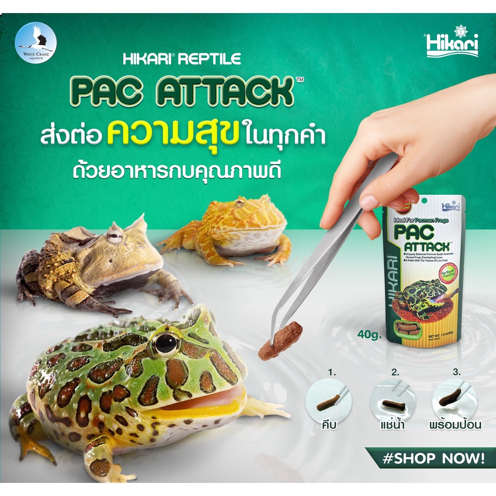 Hikari Pac Attack ขนาด 40 กรัม- เหมาะสำหรับกบสวยงาม เช่น กบแพ๊คแมน กบเบลล์ กบอะเมซอน ฮอร์นฟรอก