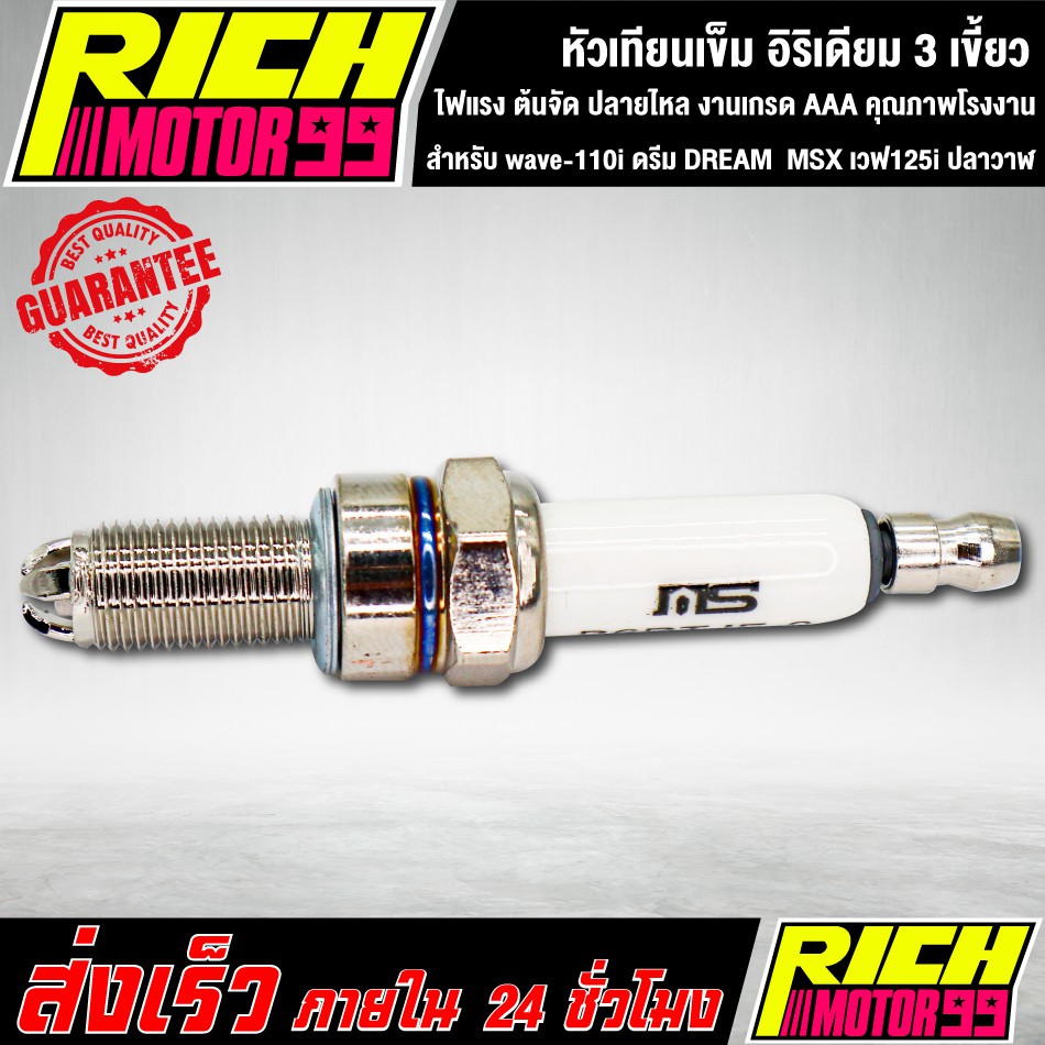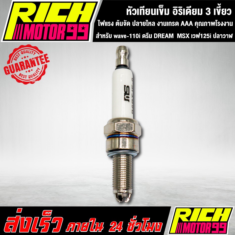 - หัวเทียนเข็ม อิริเดียม 3 เขี้ยว ไฟแรง ต้นจัด ปลายไหล สำหรับ wave-110i ดรีม DREAM MSX เวฟ125i ปลาวาฬ (1ชิ้น)