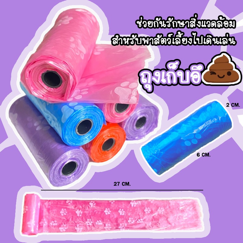 ถุงเก็บอึสัตว์เลี้ยงพกพา ใช้งานง่าย ใช้เก็บมูลสัตว์เลี้ยงระหว่างพาเดินเล่น พาไปเที่ยวนอกบ้าน เก็บอึน้องแมวในบ้าน- 1 ม้วนมีถุง 15 ใบ