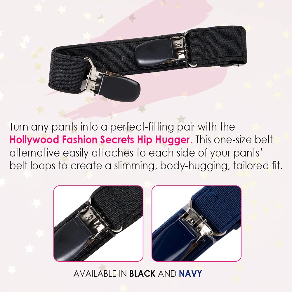 วิธีใช้: ปรับความยาวของ Hip Hugger ให้พอดีระหว่างหูร้อยเข็มขัดของกระโปรงหรือกางเกงตัวโปรดของคุณ โดยหนีบไว้ที่หูร้อยเข็มขัดด้านหนึ่ง ดึงสายอ้อมไปทางด้านหลัง และหนีบไปยังหูร้อยเข็มขัดอีกด้านหนึ่ง hip hugger ควรโอบกระชับกับเอว ซึ่งจะมอบขนาดพอดีกับรูปร่างโดยทันที ด้านหน้าเรียบสวย ด้านหลังปราศจากพื้นที่เหลือ ทั้งยังไม่จ่ายแพงเพื่อปรับแก้อีกด้วย