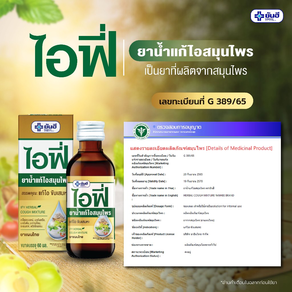 Yanhee IFY Herbal Cough Mixture ยันฮี ไอฟี่ ยาน้ำแก้ไอสมุนไพรยาน้ำแก้ไอ ไอแห้ง ไอเรื้อรัง และไอแแบบมีเสมหะ