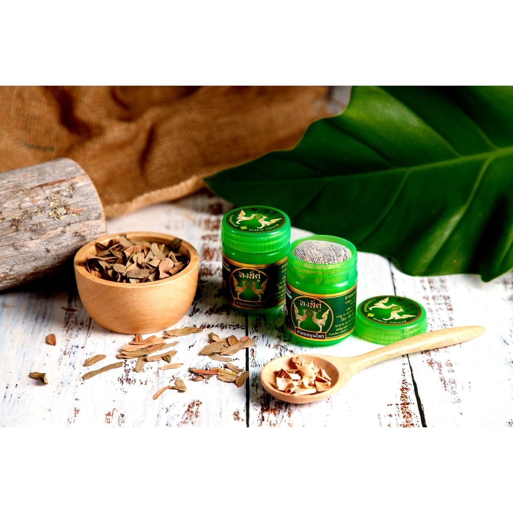 ส่วนประกอบสำคัญ : เกล็ดสะระแหน่ 20 กรัม ผิวมะกรูด 18 กรัม การบูร 18 กรัม พิมเสน 14 กรัม น้ำมันยูคาลิปตัส 8 กรัม