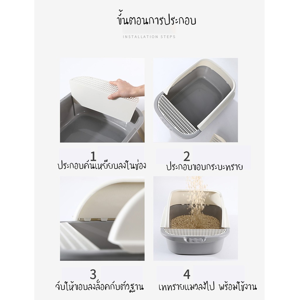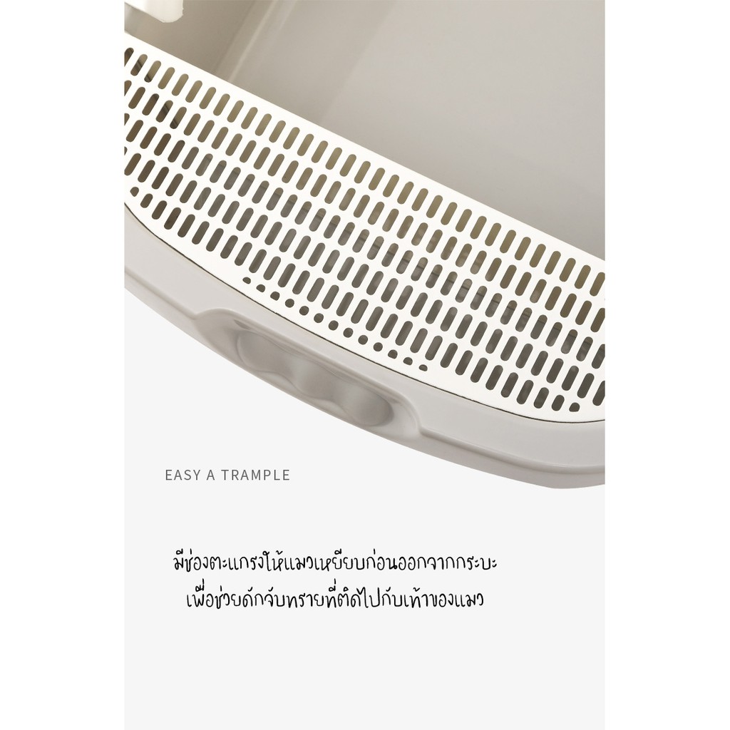 มีตะแกรงสําหรับแมวเหยียบเพื่อช่วยจับทรายที่ติดอยู่ที่ขาของแมว