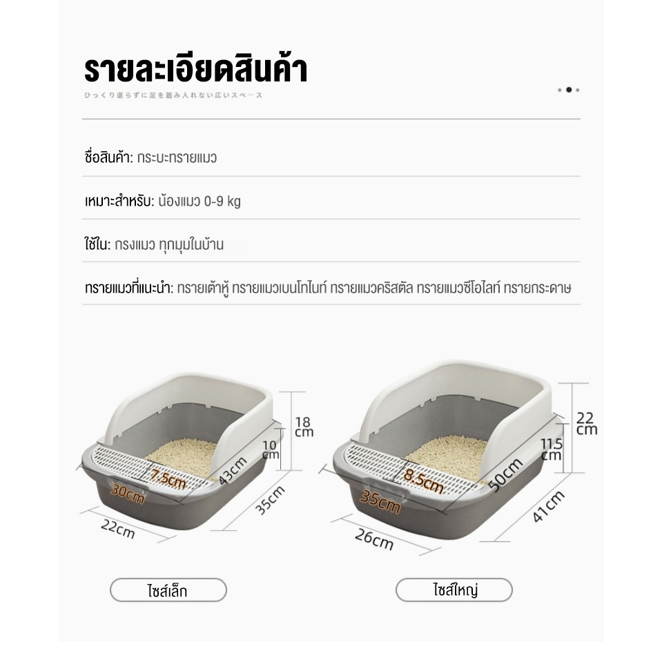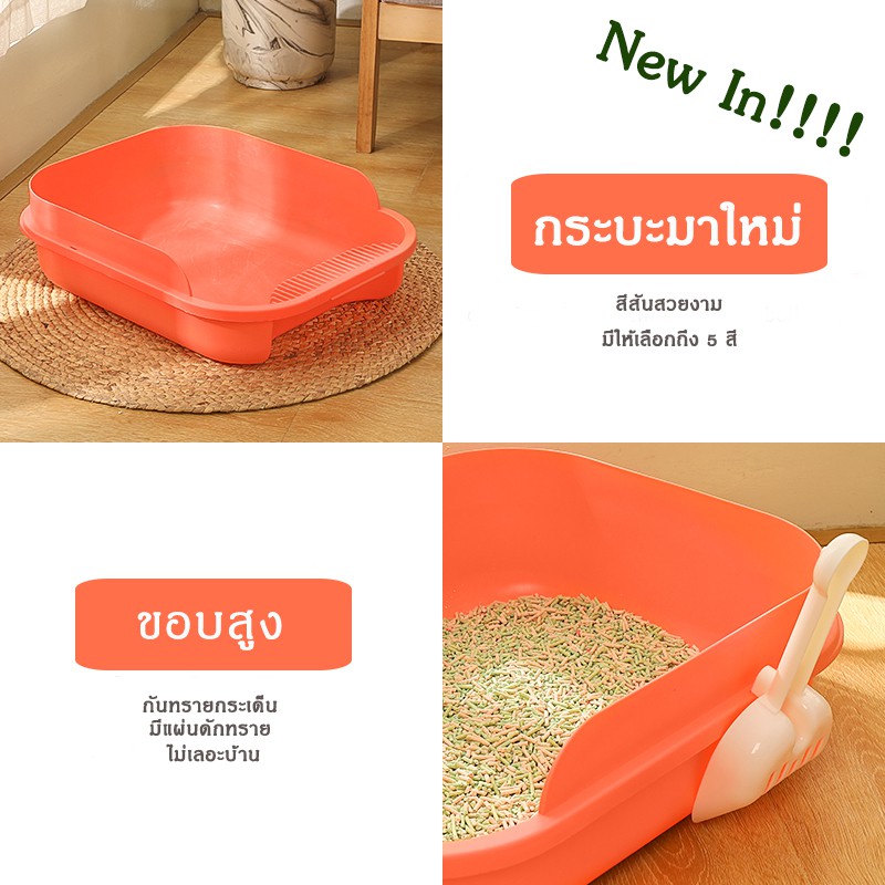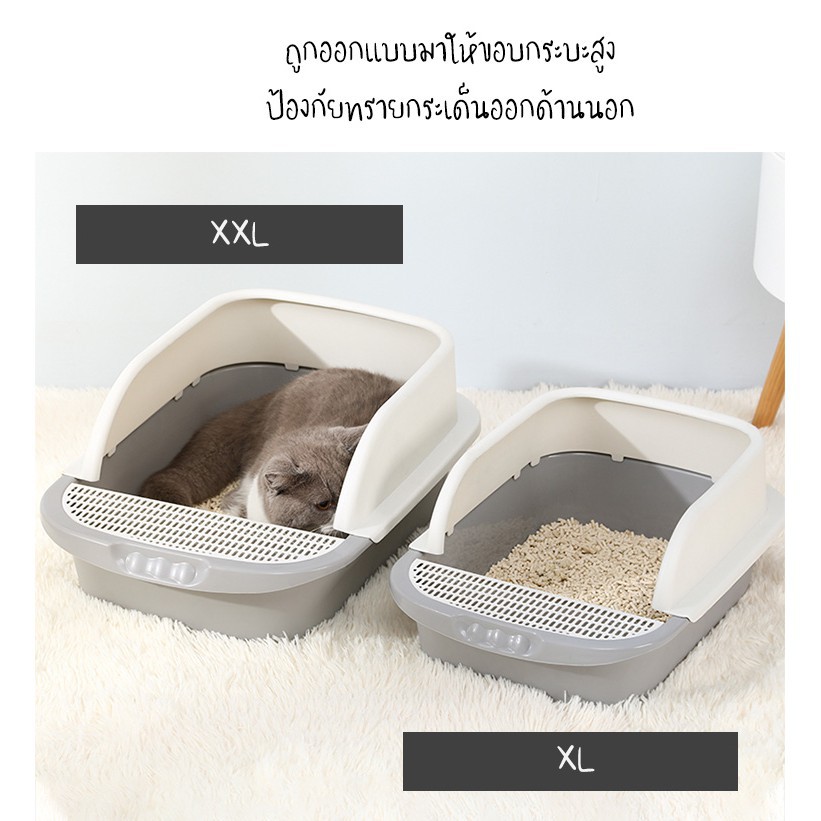 รถกระบะทรายแมวรุ่นขอบสูงมีกับดักทรายที่ด้านหน้า ช้อนทรายฟรี (เหมาะสําหรับลูกแมว)((สี **** สําคัญอาจแตกต่างจากภาพเล็กน้อยเนื่องจากแสงไม่เพียงพอ****))