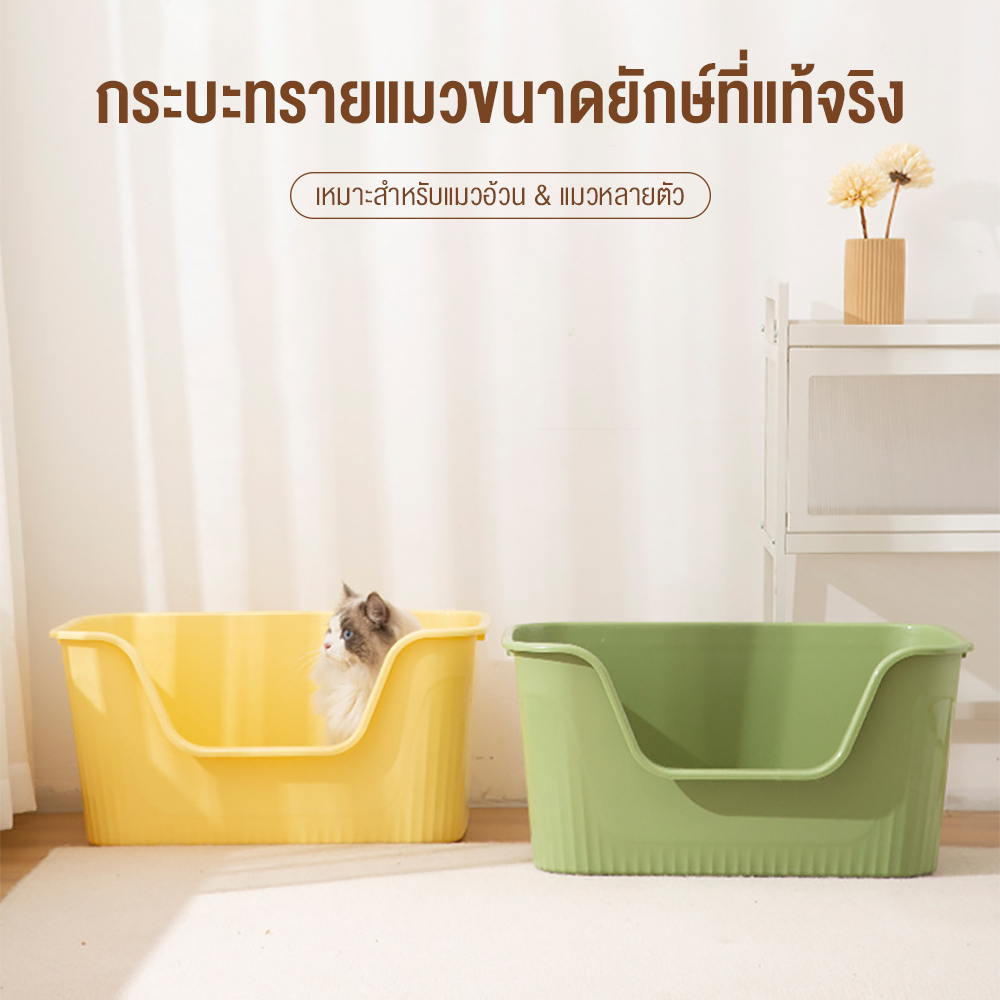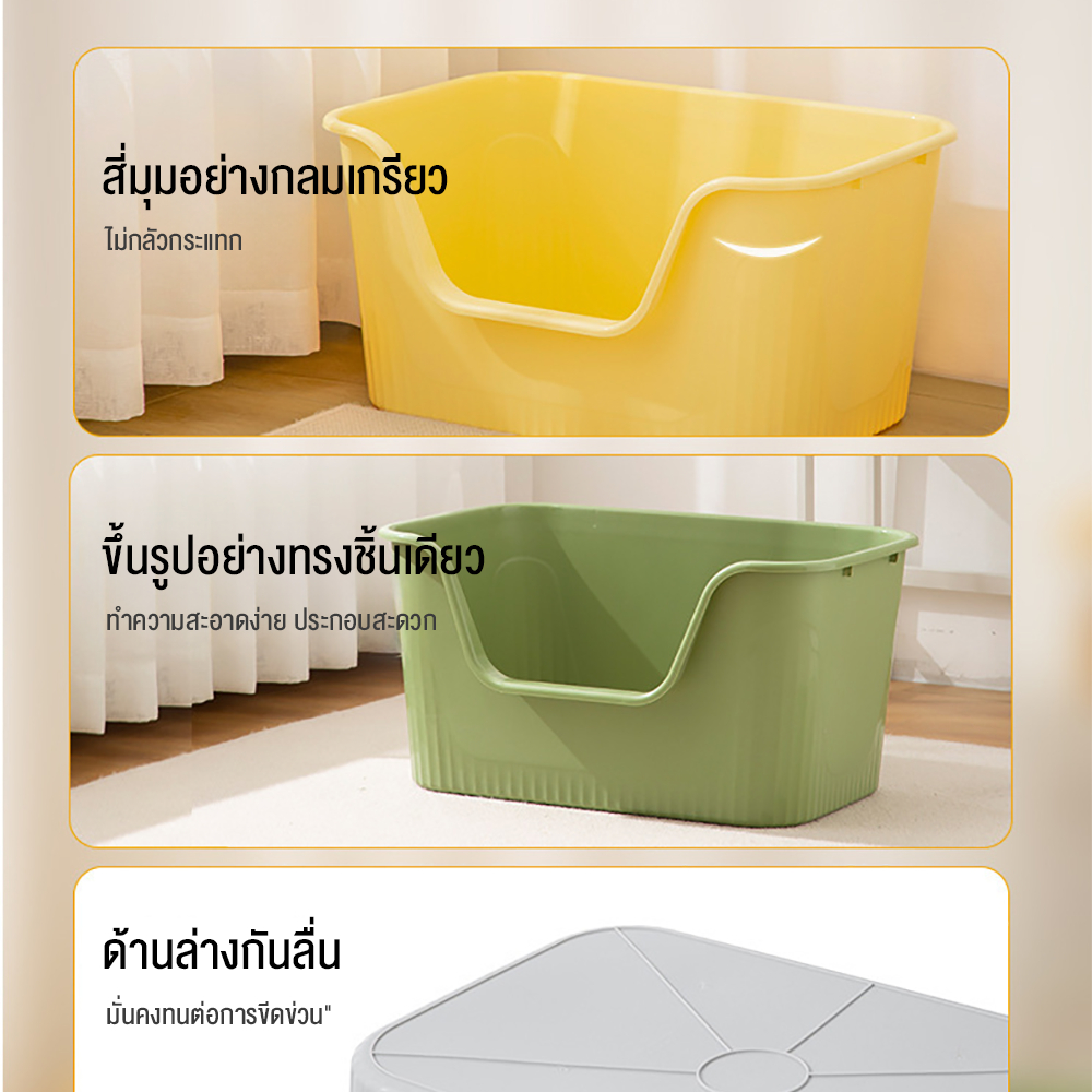 กระบะทรายแมวทำจากวัสดุคุณภาพ】กล่องทรายแมวทำจากวัสดุ PP คุณภาพสูงพื้นผิวเรียบทนต่อการตกหล่นไม่เสียหายง่ายใช้งานได้นาน