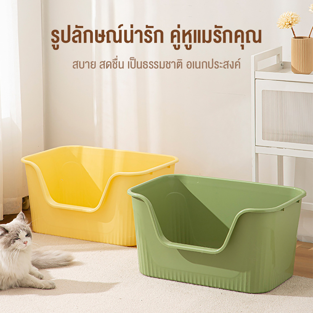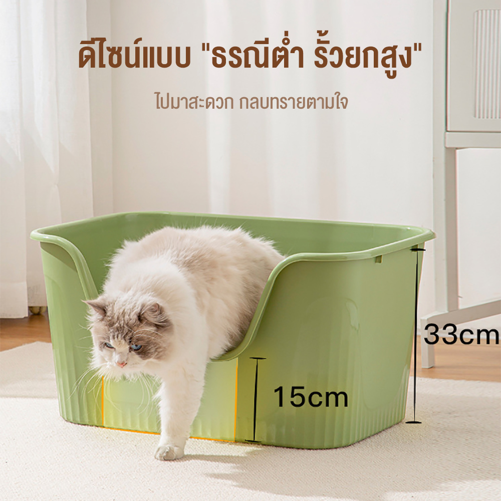 📦 ห้องน้ำแมว ขอบสูงกันกระเด็น กระบะทรายแมว พร้อมที่ตักมีตะแกรงดักทราย รุ่นขอบสูงโปร่ง มี 3 สีให้เลือก