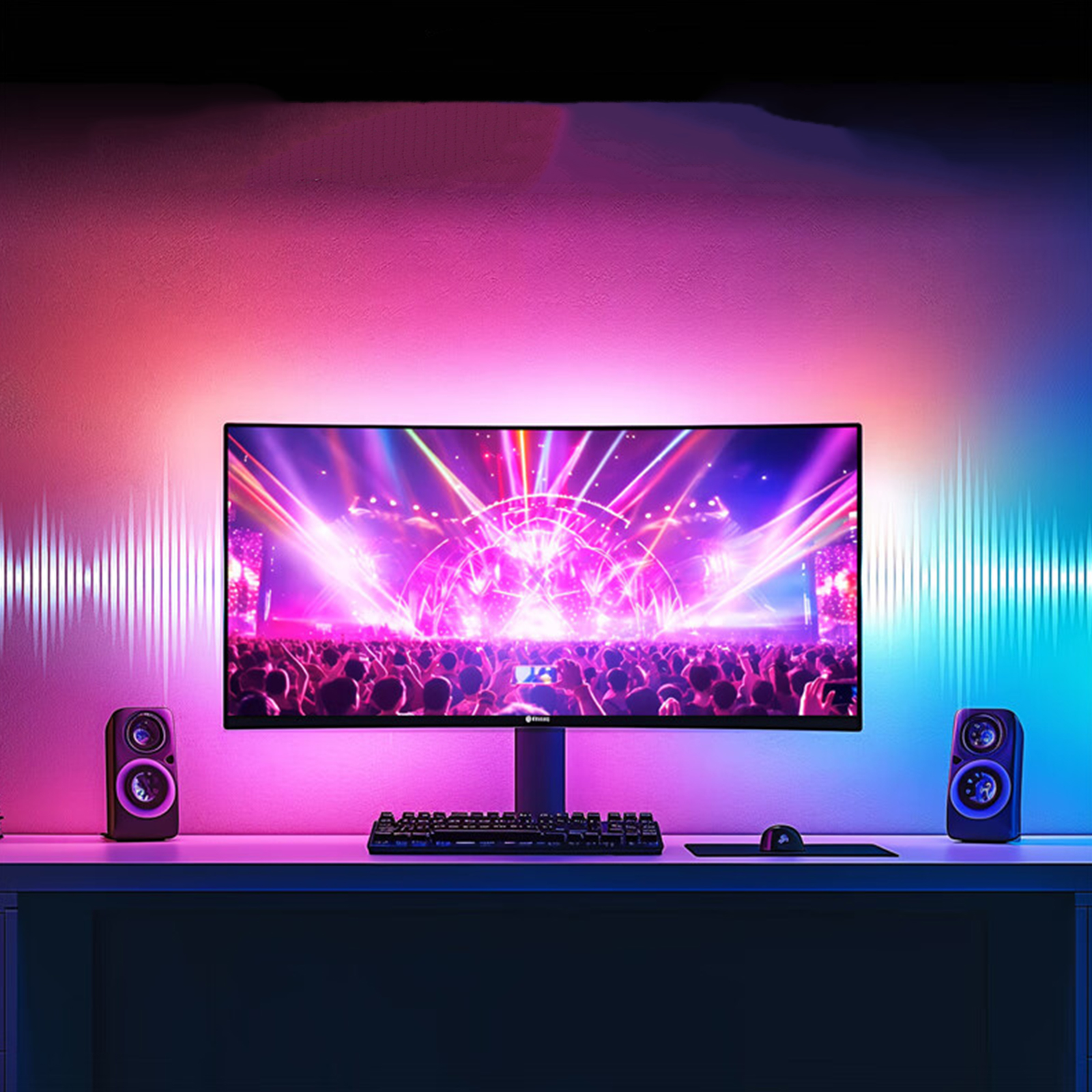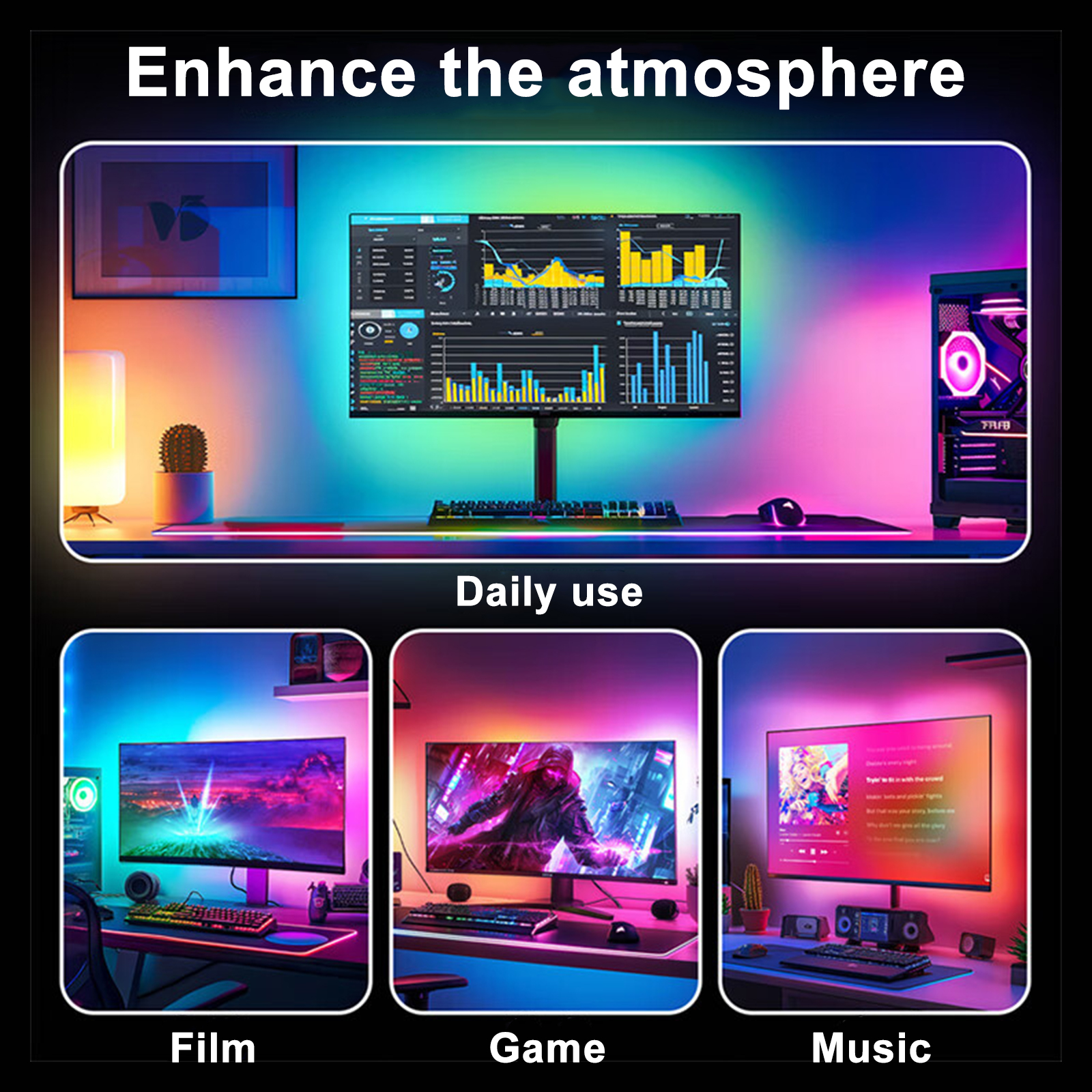 4.การติดตั้งและตั้งค่าอย่างง่ายดาย: เพียงดาวน์โหลดซอฟต์แวร์หนึ่งตัวเพื่อควบคุมไฟตกแต่งด้านหลังหน้าจอพีซี เปลี่ยนระหว่างโหมดโปรดของคุณได้อย่างง่ายดายเพียงคลิกเดียว ทำให้สะดวกและปลอดภัยกว่าระบบที่ใช้กล้องแบบเดิม
