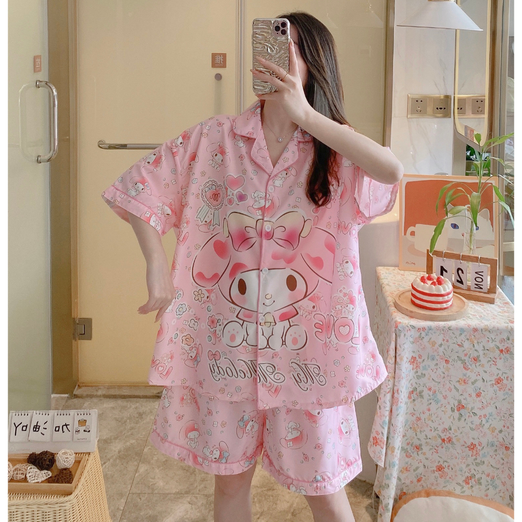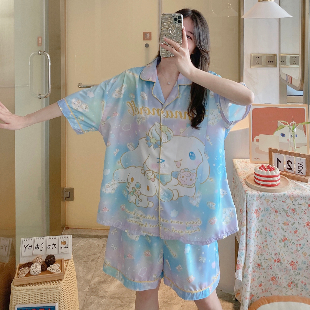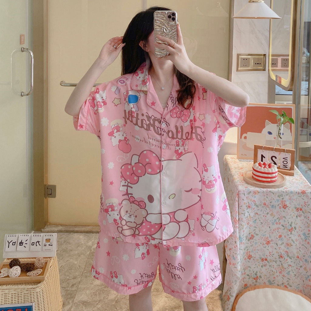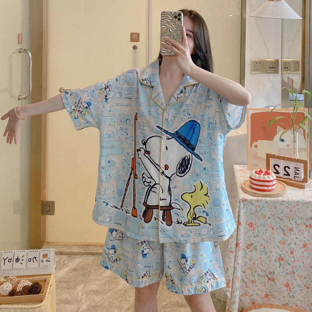 Áo ngủ lụa ý cỡ lớn đồ ngủ lụa mỏng tay dài hoạt hình ngắn tay mặc thường ngày