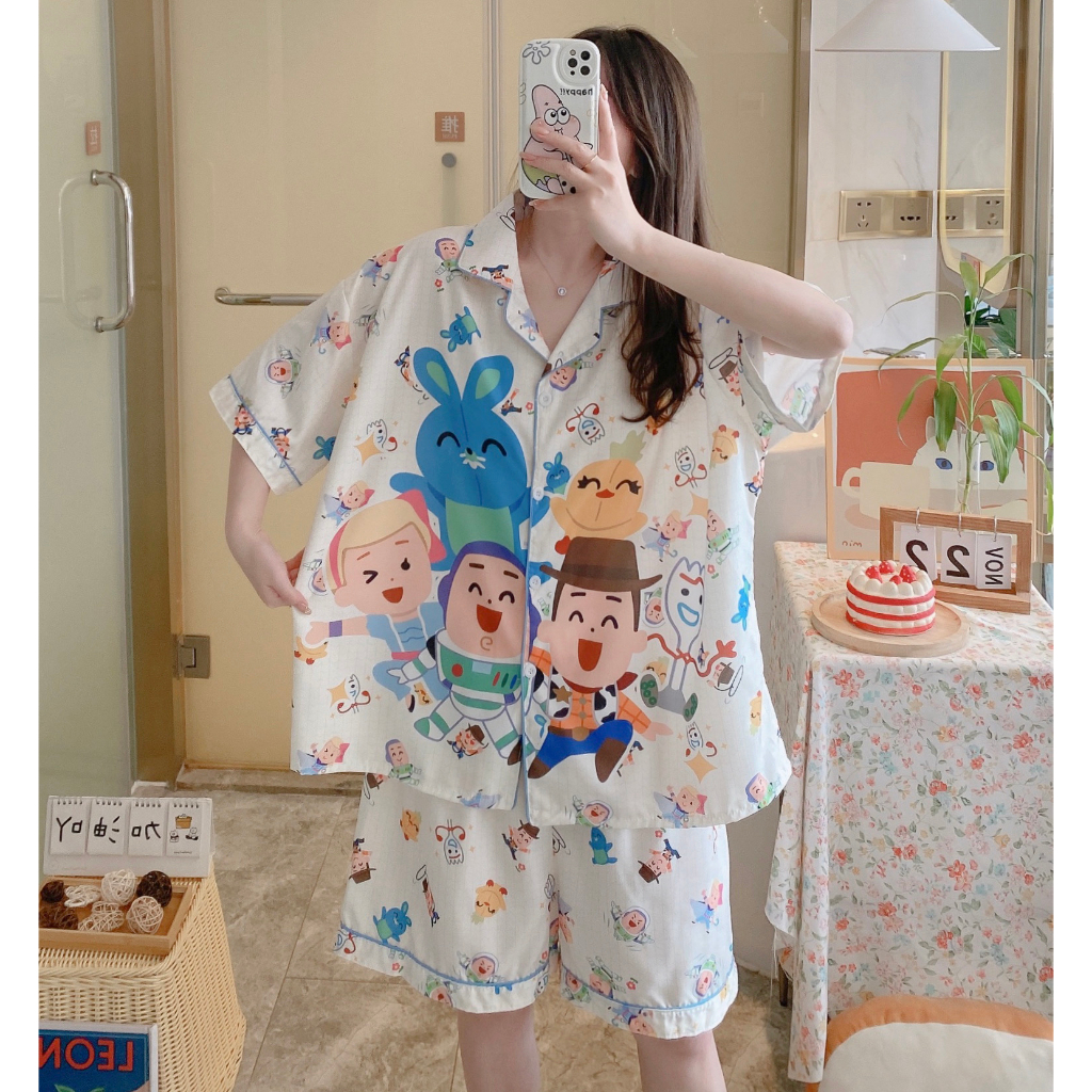 Bộ đồ ngủ bộ đồ ngủ cotton ngắn tay hoạt hình Bộ đồ ngủ hoạt hình Đồ ngủ nữ