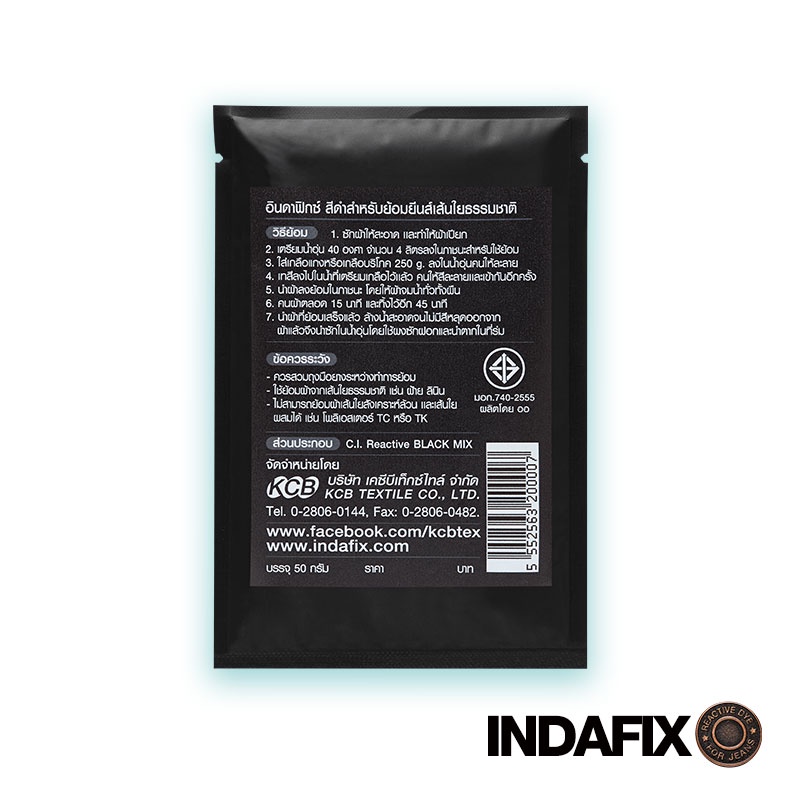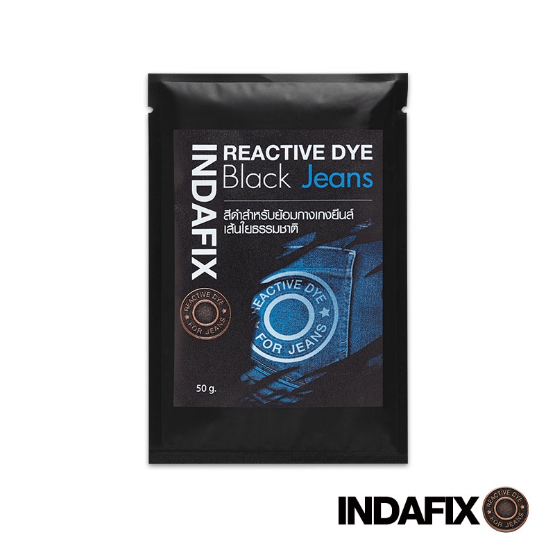 สีย้อมผ้า INDAFIX สำหรับย้อมกางเกงยีนส์เส้นใยธรรมชาติ ขนาด 50 กรัม*ใช้ได้เฉพาะยีนส์ผ้าเส้นใยธรรมชาติเช่น cotton รบกวนลูกค้าเช็คผ้าที่จะนำมาย้อมก่อนทำการสั่งซื้อสินค้าครับ*