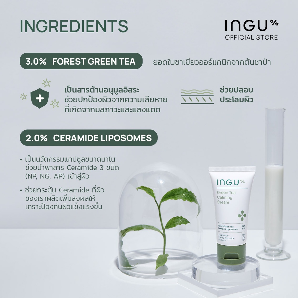 มอยซ์เจอร์ไรเซอร์ปลอบประโลมผิวที่ประกอบด้วยสาร Ceramide Liposomes และ Squalane ที่มีความเข้มข้นสูงเพื่อช่วยเสริมเกราะป้องกันผิวให้แข็งแรง ผสานกับยอดใบชาเขียวออร์แกนิกจากต้นชาป่าที่เด็ดด้วยมือจากจังหวัดเชียงราย ซึ่งอุดมไปด้วยสารต้านอนุมูลอิสระและฤทธิ์ปลอบประโลมผิว รวมถึงมี AquaxylTM และ Glyceryl Glucoside ที่มีความสามารถในการช่วยส่งน้ำเข้าสู่ผิว เพื่อเพิ่มความชุ่มชื้นได้อย่างล้ำลึก อีกทั้งยังมี Niacinamide ที่ช่วยแก้ปัญหาความหมองคล้ำและความไม่สม่ำเสมอของสีผิว เนื้อมีความเข้มข้นแต่ซึมเข้าผิวได้อย่างรวดเร็ว จึงทำให้ผิวดูนุ่ม ชุ่มชื้น เหมือนบำรุงมาอย่างดีส่วนผสมหลัก