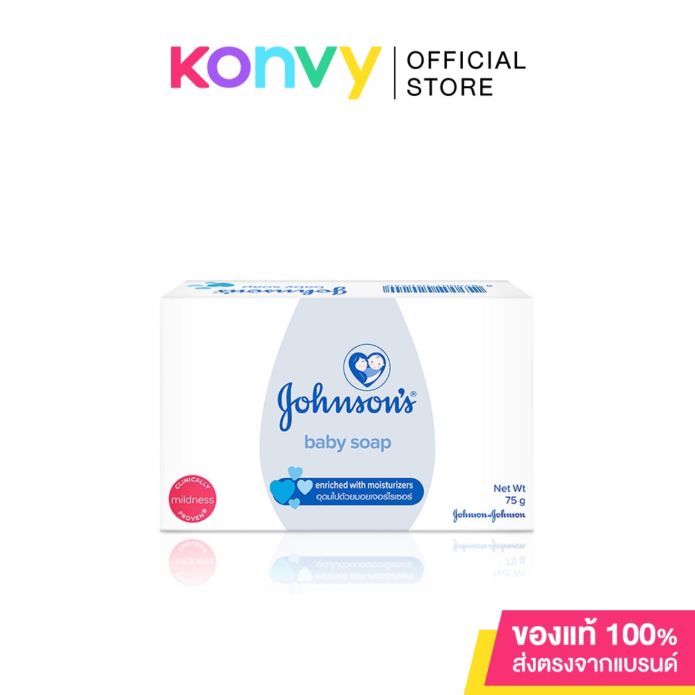 Johnson's Baby Soap 75g สบู่เด็ก ทำความสะอาดได้อย่างอ่อนโยน โดยไม่ทำให้ผิวที่บอบบางของลูกน้อยแห้ง พร้อมให้ความชุ่มชื้นอย่างอ่อนโยน• ทำความสะอาดได้อย่างอ่อนโยน โดยไม่ทำให้ผิวที่บอบบางของลูกน้อยแห้ง