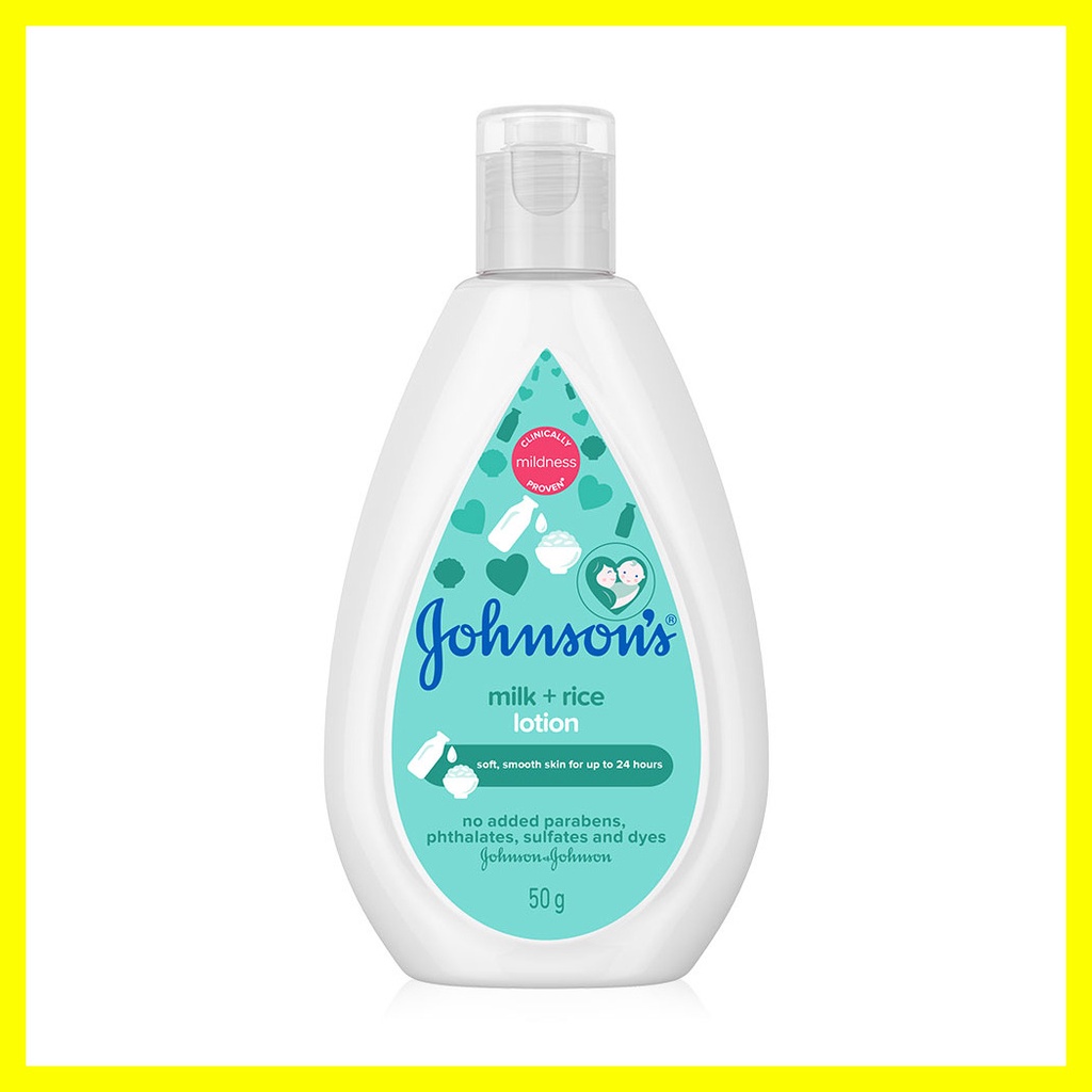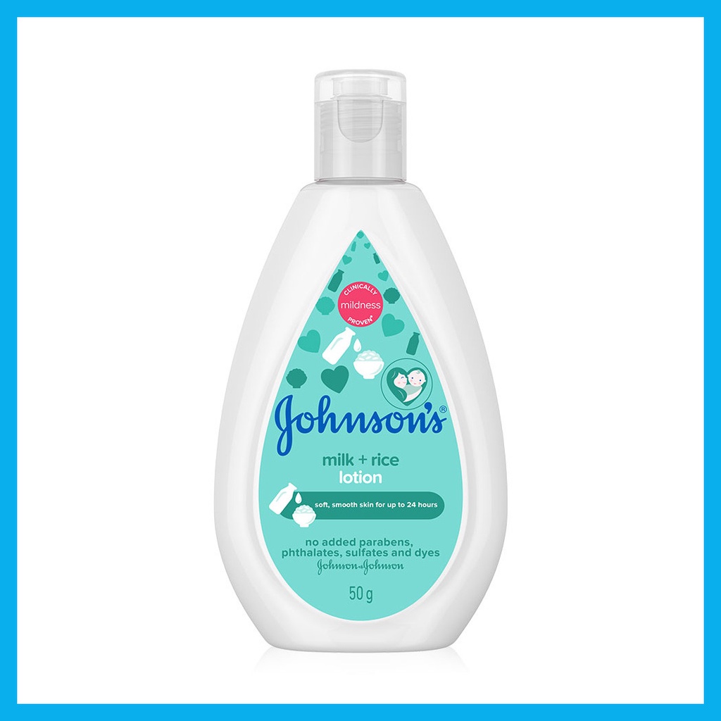 Cr.facebook.com/JohnsonsBabyClubJohnson's Milk + Rice Baby Lotion 50ml โลชั่นบำรุงผิว ผสานคุณค่าน้ำนมธรรมชาติและสารสกัดจากข้าว เพื่อช่วยบำรุงผิวอย่างครบถ้วน โดยให้ความชุ่มชื้นผิวยาวนาน 24 ชั่วโมง