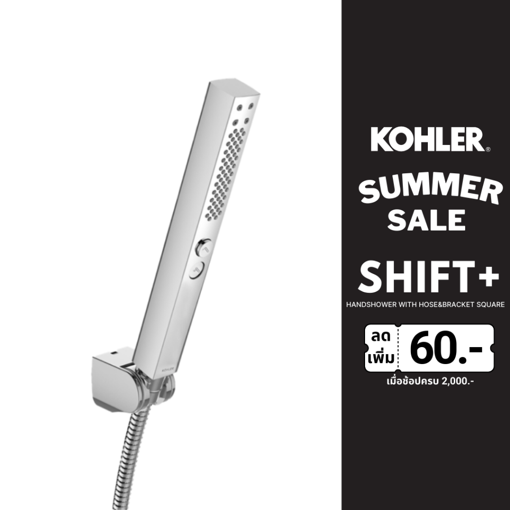 SHIFT+ handshower with hose&bracket square K-28693T-CPชุดฝักบัวสายอ่อน 2 ระดับ ยาว 1.5 เมตร ทรงเหลี่ยม พร้อมสายอ่อนและขอแขวน รุ่นชิฟ สีโครเมี่ยม