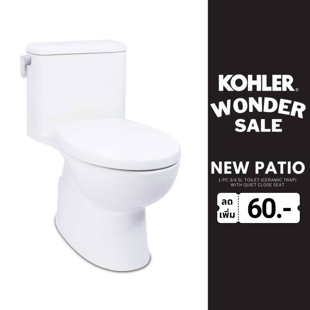 NEW PATIO 1-PC 3/4.5L Toilet with Quiet Close Seat (Ceramic Trap) K-31739X-S-0สุขภัณฑ์แบบชิ้นเดียว ใช้น้ำ 3/4.5 ลิตร รุ่น นิว แพททิโอ พร้อมฝารองนั่งแบบกันกระแทก (ท่อเซรามิก)