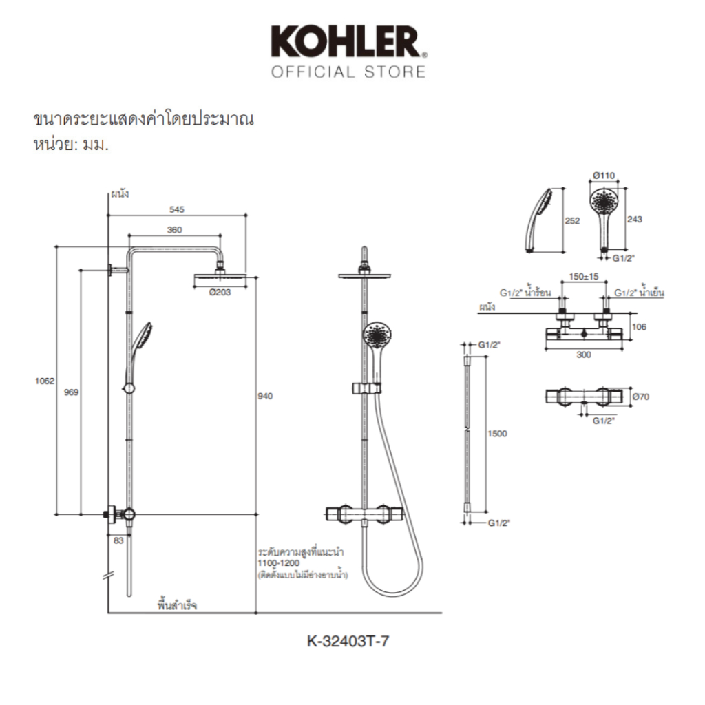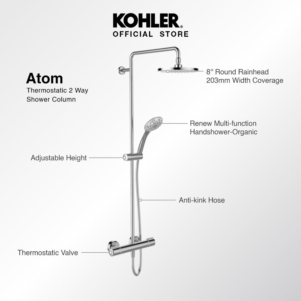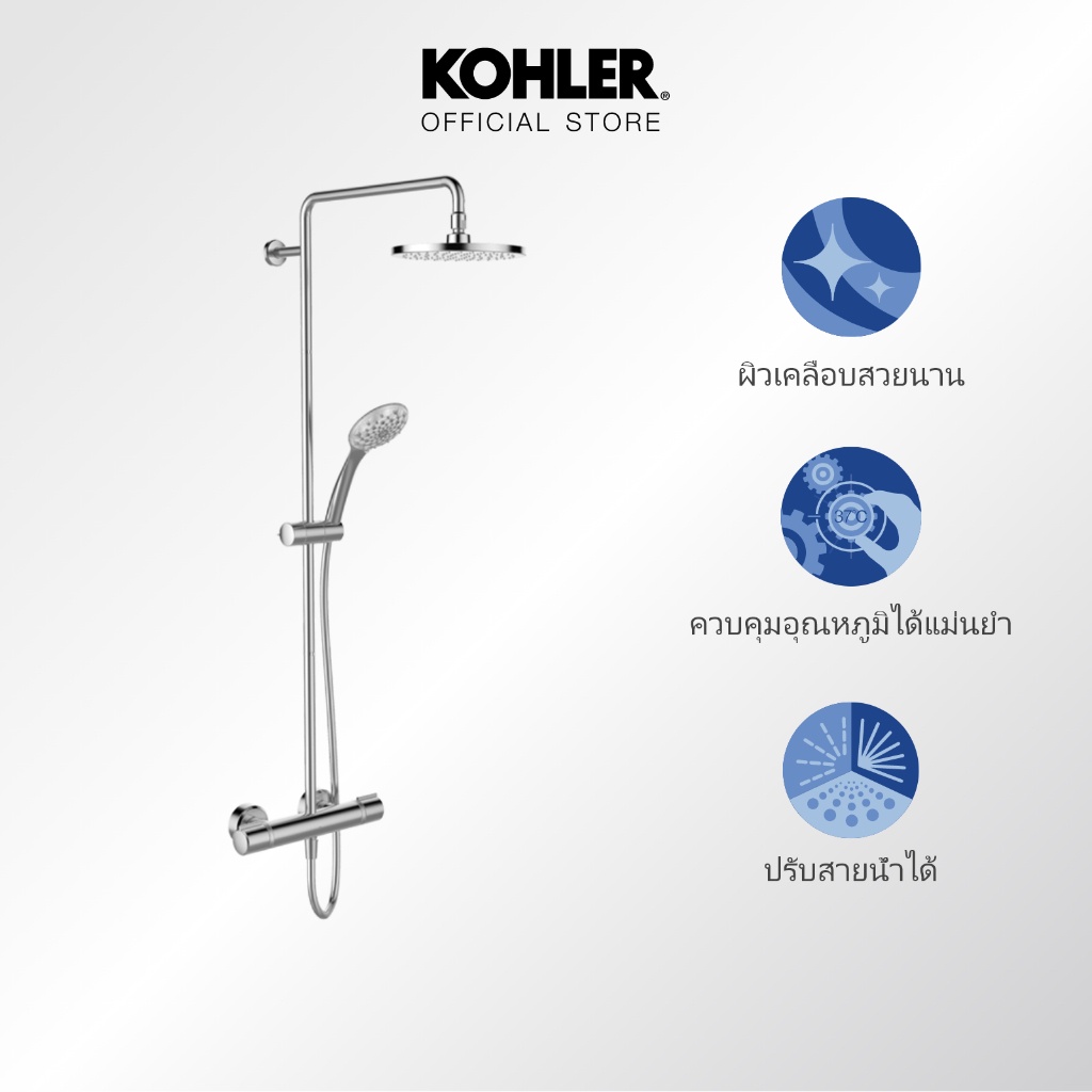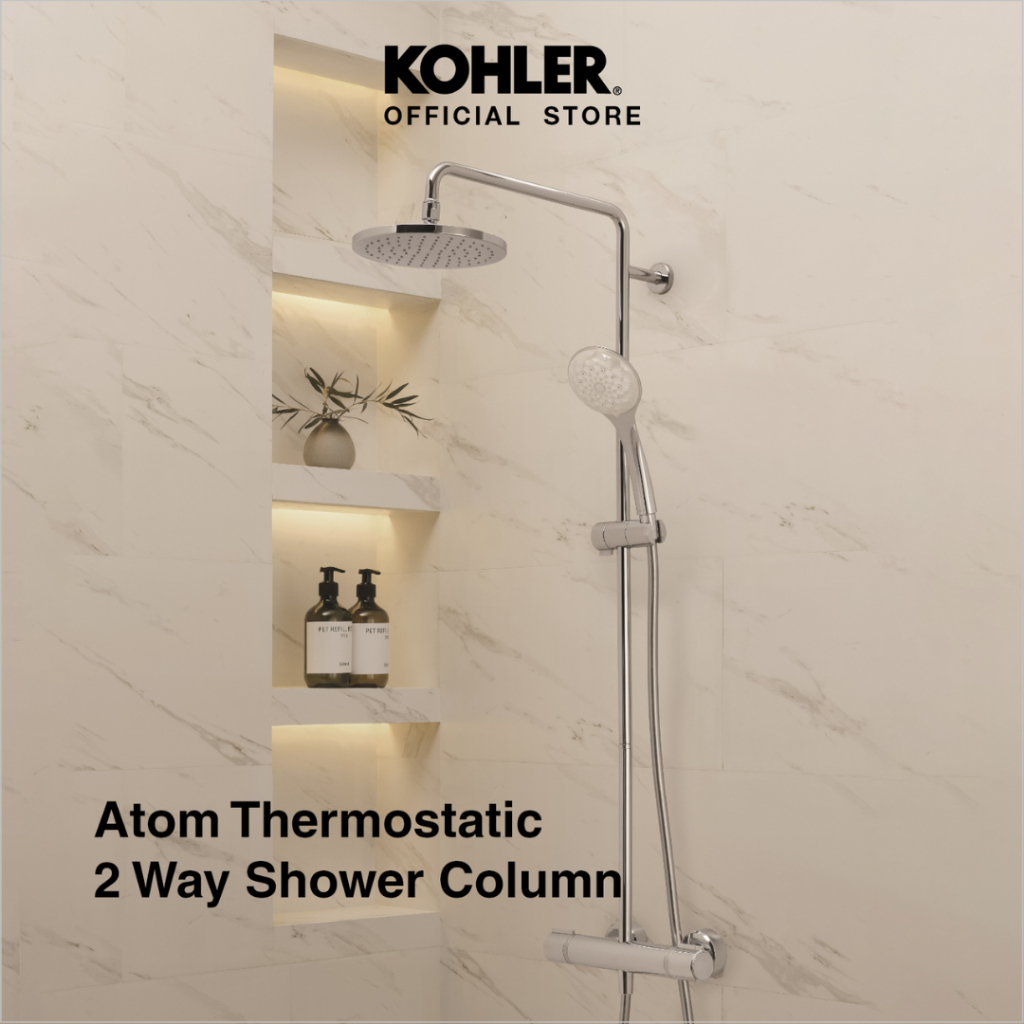 ATOM THERMOSTATIC 2-WAY SHOWER COLUMN-DIRECT K-32403T-7-CPก๊อกผสมยืนอาบระบบเทอร์โมสแตทติก พร้อมชุดฝักบัวสายอ่อนและชุดฝักบัวก้านแข็ง รุ่นอะตอม