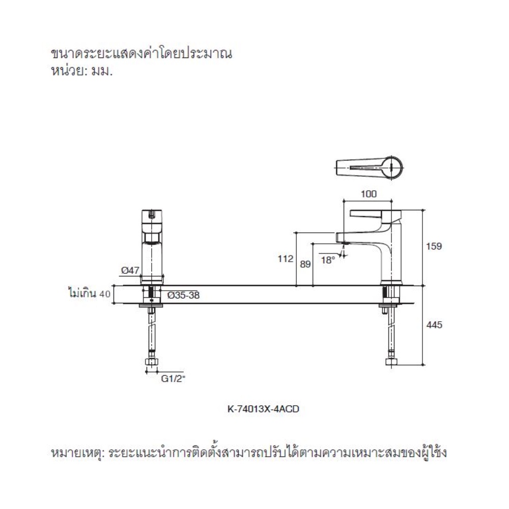 7. ระยะจากกึ่งกลางตัวก๊อกถึงกึ่งกลางปากก๊อก 100 มม.