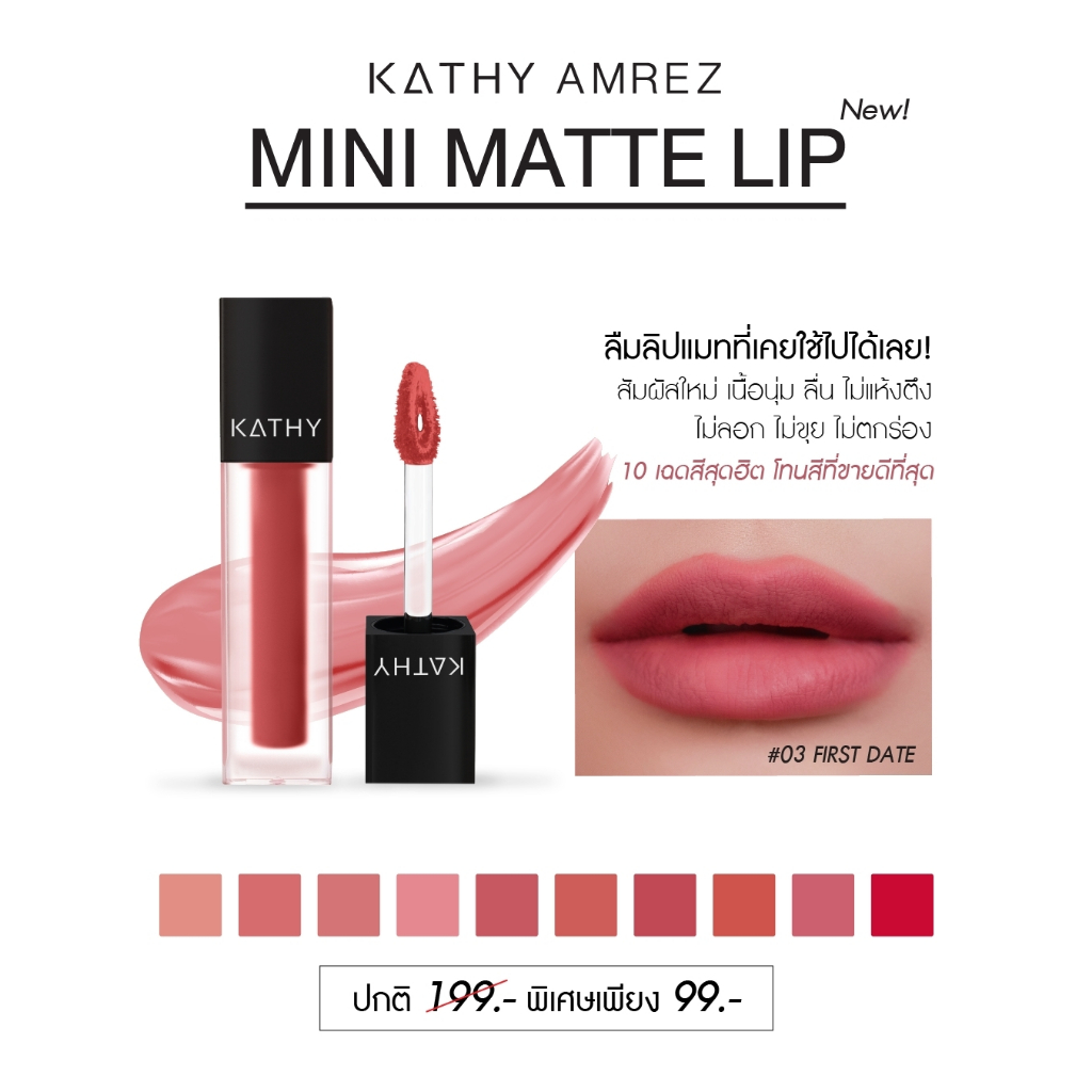 ลิปกระแต ลิปมินิแมท Kathy Cosmetics ลิปไม่ติดแมส เนื้อ ไม่แครก ไม่ขุย ไม่ตกร่อง ราคา 99.- (ปกติ 199.-)