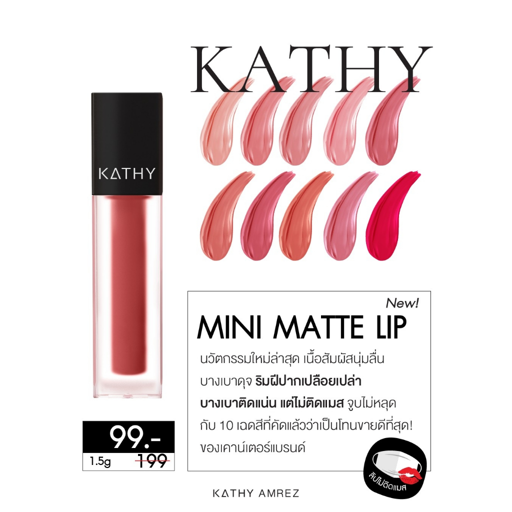 ลิป” Kathy Mini Matte Lip “ลิปกระแต ลิปมินิแมท Kathy Cosmetics ลิปไม่ติดแมส เนื้อ ไม่แครก ไม่ขุย ไม่ตกร่อง ราคา 99.- (ปกติ 199.-)