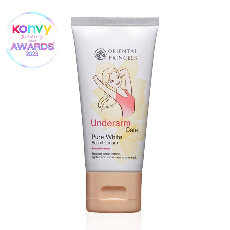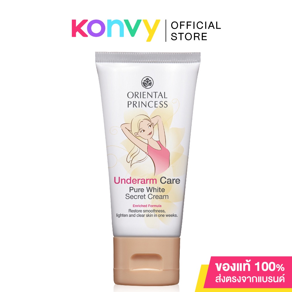Cr: Orientalprincess.comOriental Princess Underarm Care Pure White Secret Cream Enriched Formula 50g ครีมปรนนิบัติดูแลผิวใต้วงแขน สูตรเข้มข้น เพิ่มขาวกระจ่างใสเรียบเนียนน่าสัมผัส ผสานพลังคุณค่าของน้ำนม วิตามิน และสารสกัดจากธรรมชาติ ทำให้ผิวที่แห้งและหยาบกร้านเนียนนุ่มขึ้น พร้อมปรับสีผิว สม่ำเสมอเรียบเนียน และช่วยระงับกลิ่นกายได้เป็นอย่างดี
