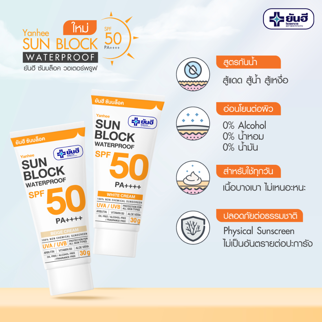 -Yanhee Sunblock Waterproof SPF 50 PA++++ White/Beige 30g (1 หลอด)