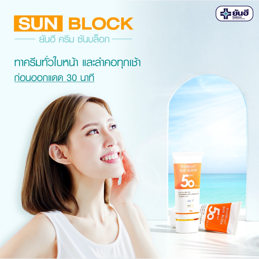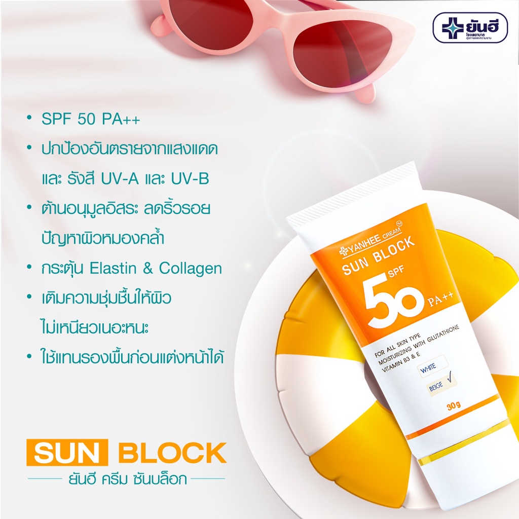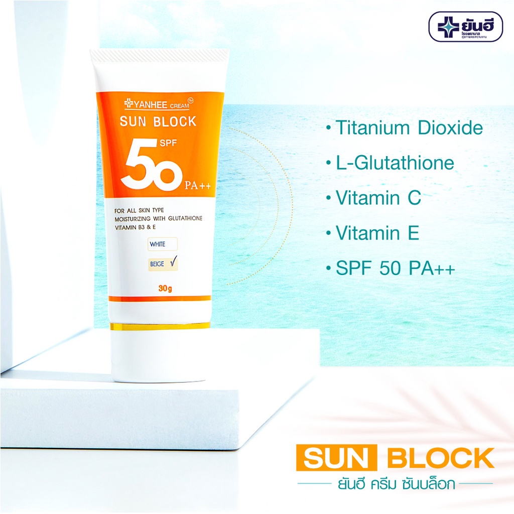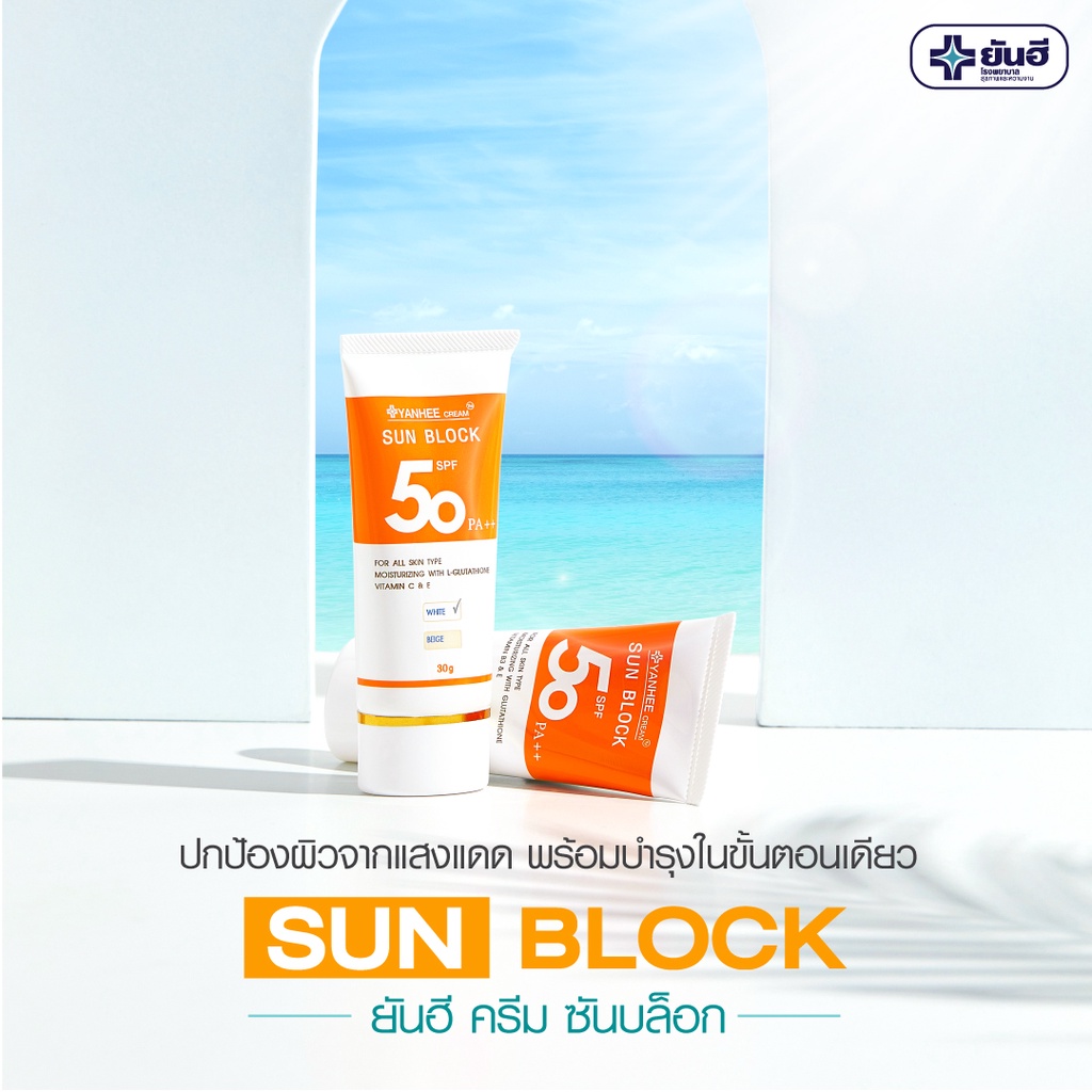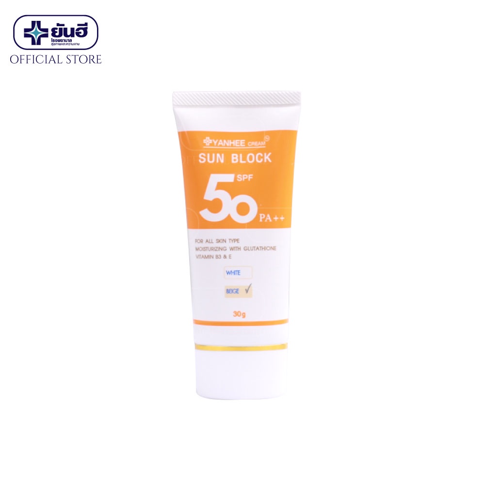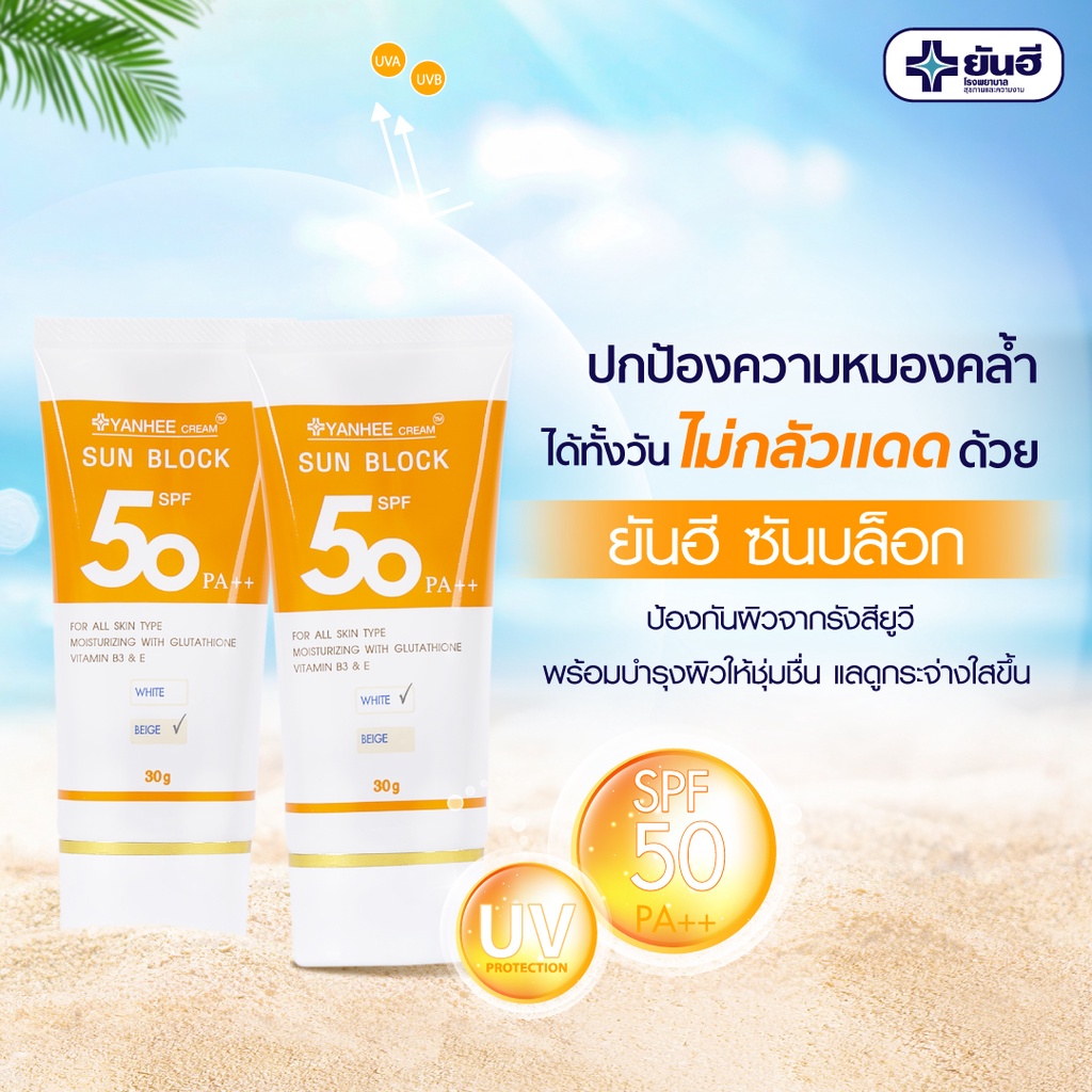 ยันฮีครีม ซันบล็อก SPF 50 PA++ / สีเบจ , สีขาว ครีมกันแดด 2 IN 1 ปกป้องผิวจากแสงแดดและบำรุงผิวไปในตัว• ปกป้องผิวจากแสงแดด และ รังสียูวี ด้วย SPF 50 PA++