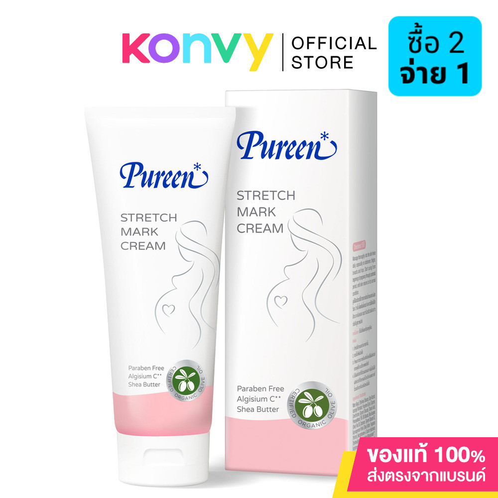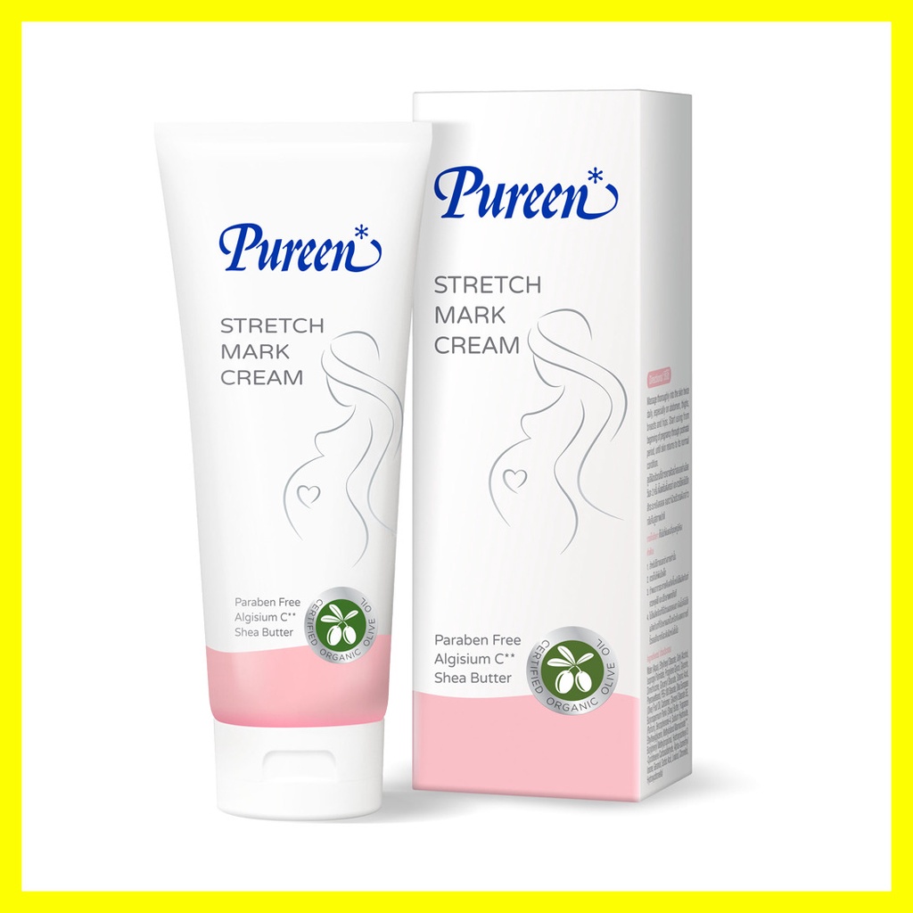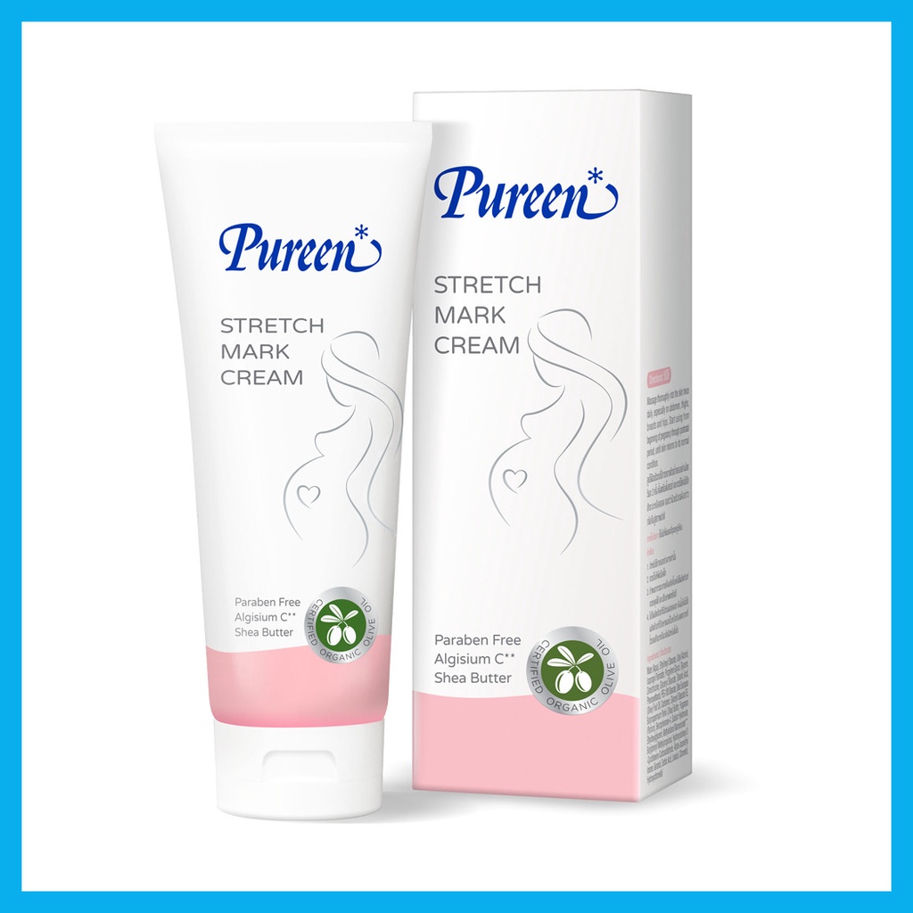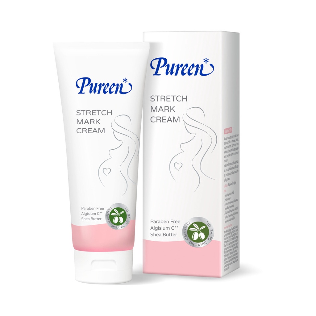 Pureen Stretch Mark Cream 200g ครีมปกป้องผิวช่วงตั้งครรภ์ เนื้อครีมบางเบา ไม่เหนอะหนะ อุดมด้วยส่วนผสมของ Algisium C, Organic Olive Oil และ Shea Butter ช่วยปกป้องผิวจากการแตกลาย ริ้วรอยแลดูลดลง ให้ผิวแลดูกระชับ เรียบเนียน ไม่แห้งกร้าน พร้อมมอบกลิ่นหอมอ่อนๆ จากอโลเวร่า ให้ความรู้สึกผ่อนคลาย• อุดมด้วยส่วนผสมของ Algisium C, Organic Olive Oil และ Shea Butter