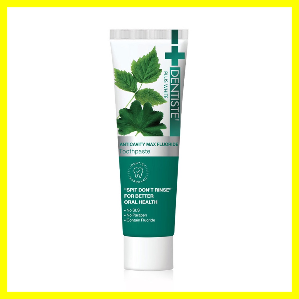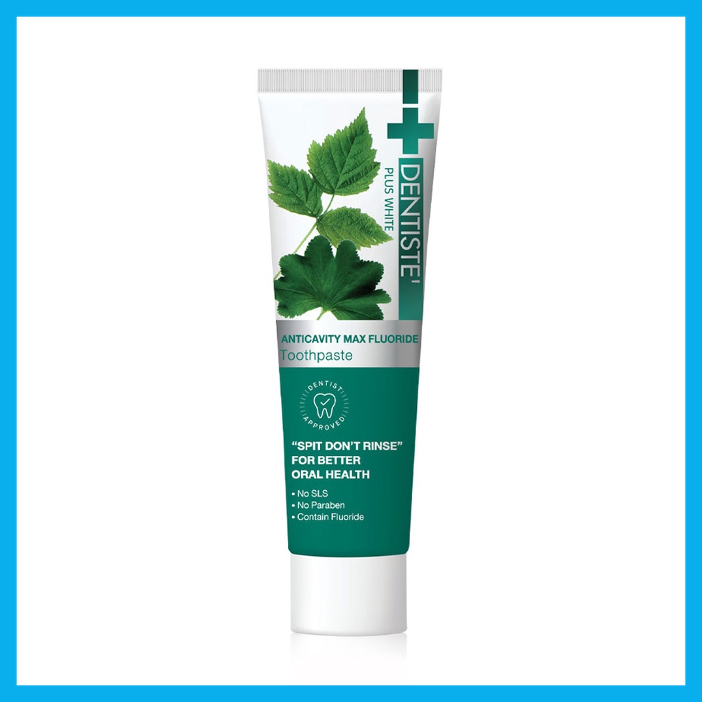 Dentiste Anticavity Max Fluoride Toothpaste 10g ยาสีฟันชนิด “แปรงแห้ง” สูตรฟลูออไรด์ 1,500 PPM ช่วยป้องกันฟันผุ ผสานสมุนไพร 14 ชนิด เพื่อลมหายใจหอมสดชื่น และสุขภาพช่องปากที่ดี• การ “แปรงแห้ง” หมายถึง การแปรงฟันโดยไม่ต้องบ้วนน้ำ เพื่อเปิดโอกาสให้ฟลูออไรด์ทำงานได้อย่างเต็มประสิทธิภาพไม่ถูกชำระล้างโดยน้ำจากการบ้วนปาก